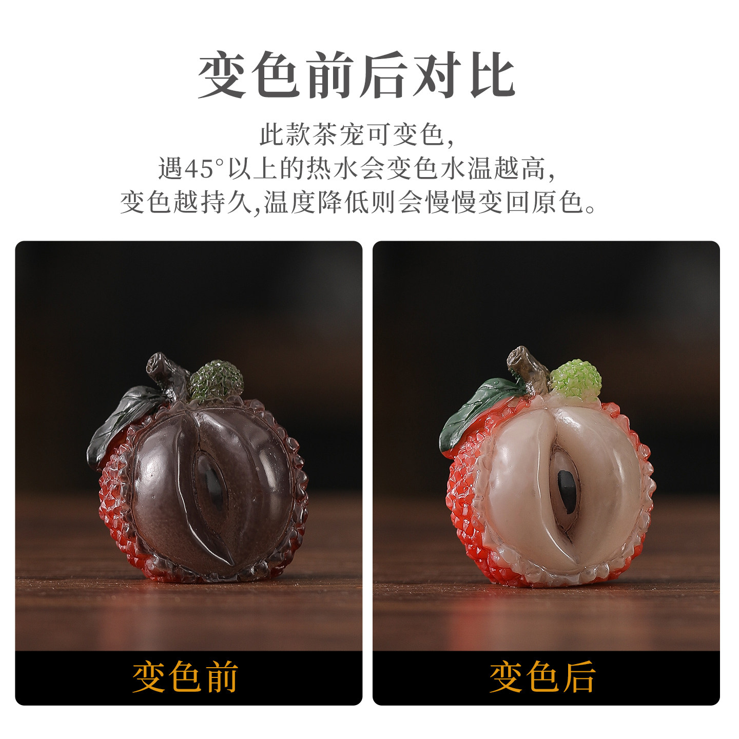 变色茶宠水果摆件浇水变色精品可养茶桌茶盘荔枝草莓茶玩茶具配件