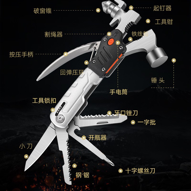 户外多功能钳露营锤汽车破窗锤逃生安全锤割绳器带电W筒工具刀套