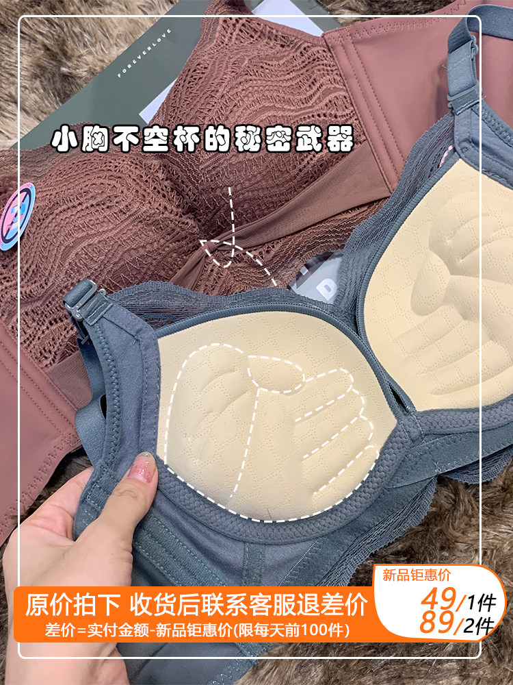 小胸内衣女透气聚拢不空手掌杯加厚文胸防下垂显胸大性感平胸专用