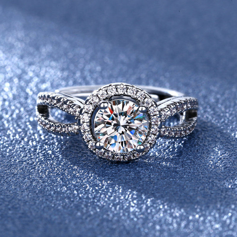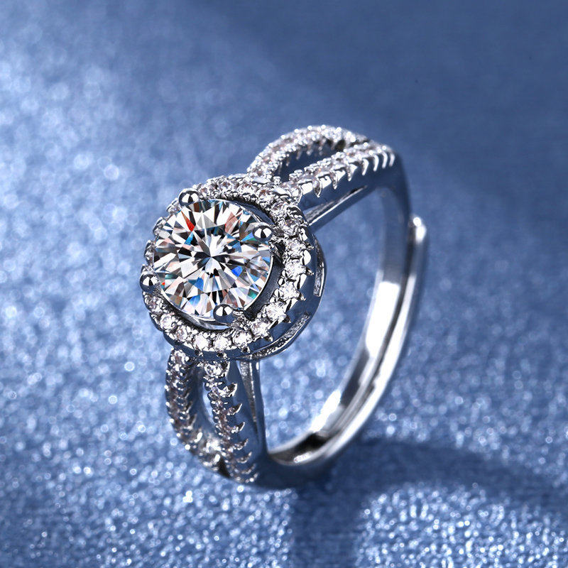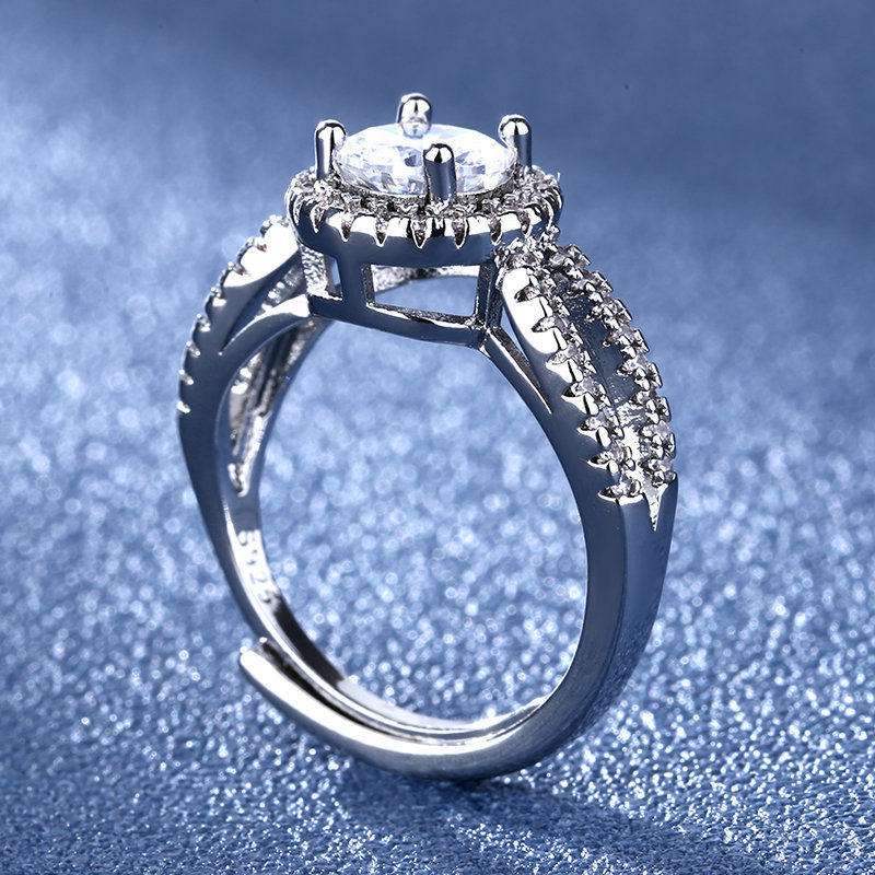 韩版时尚镀925纯银硞石镶钻1克拉戒指少女简约甜美大气结婚钻戒