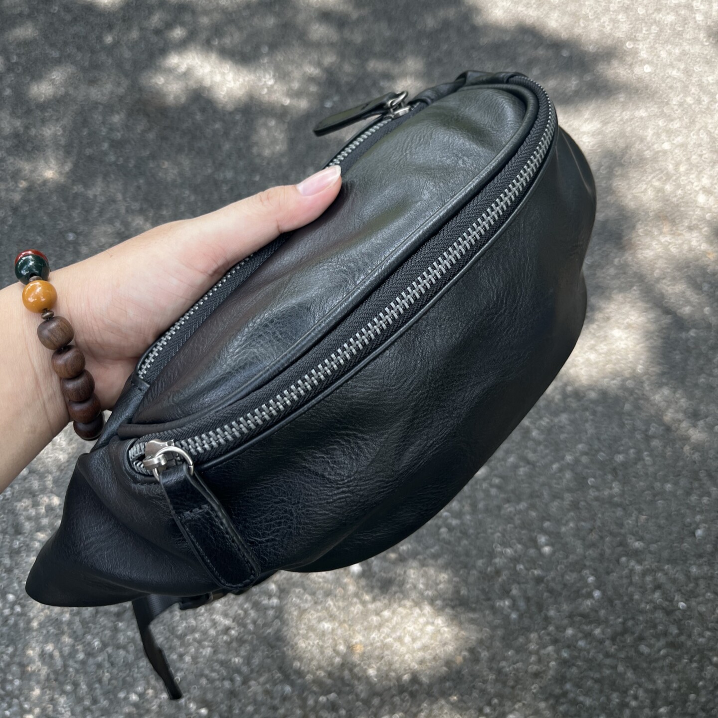 HKK包包潮男时尚斜挎胸包皮质休闲轻便运动包软皮骑行包腰包小包