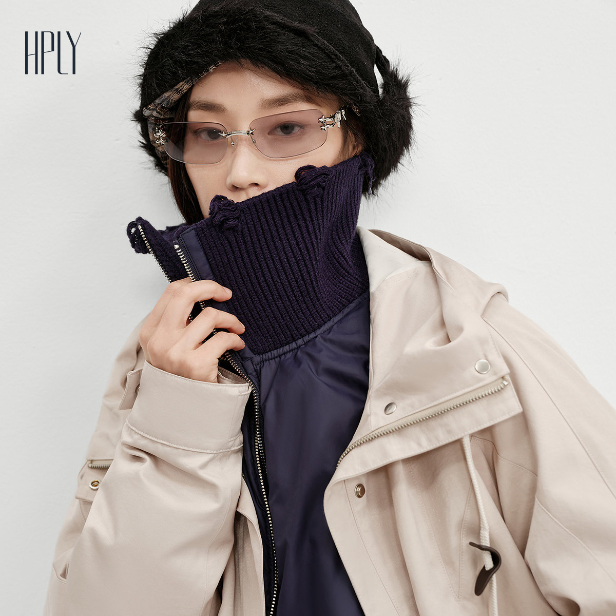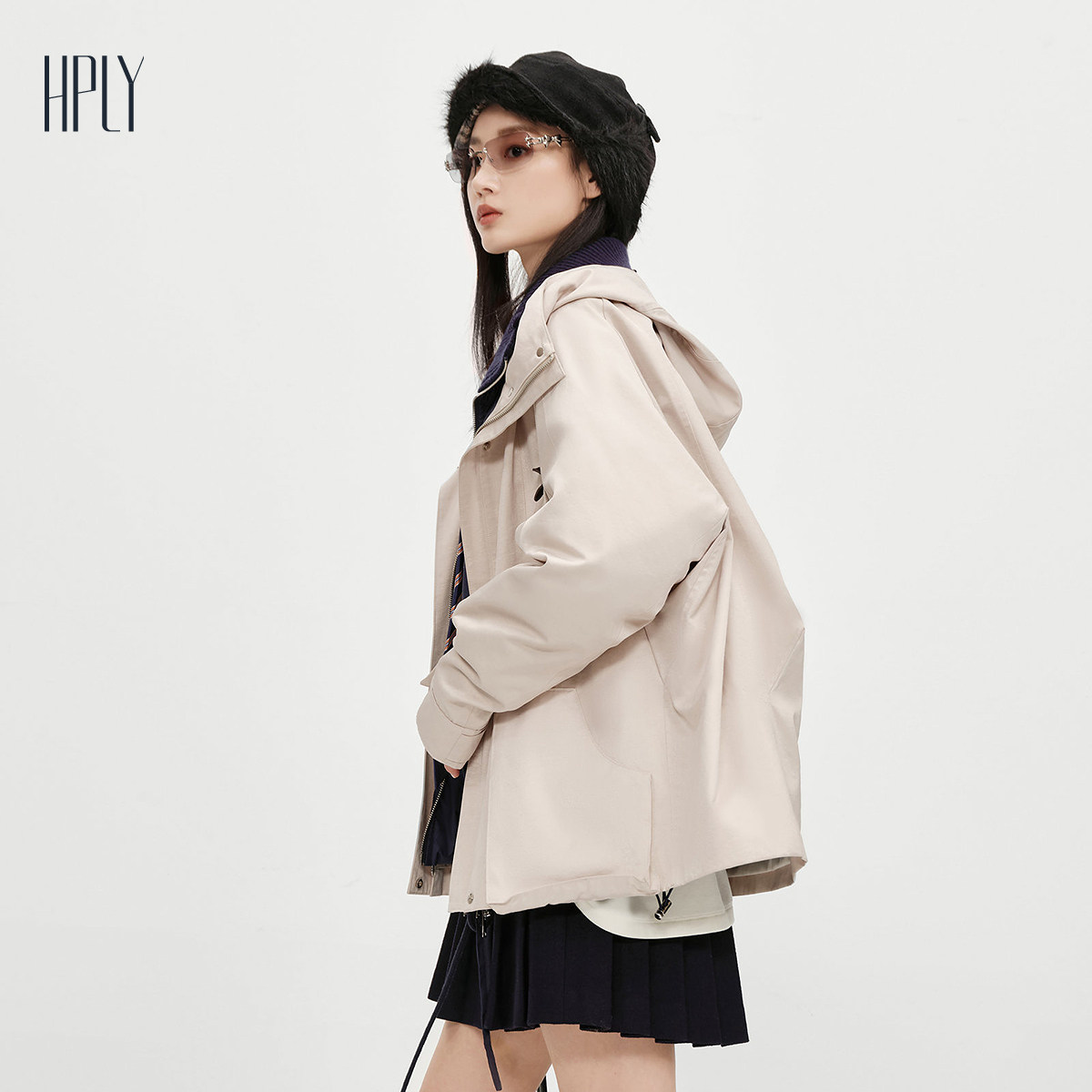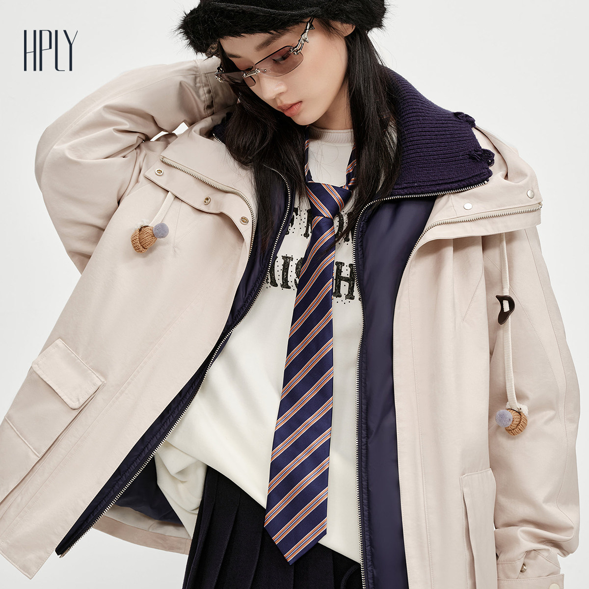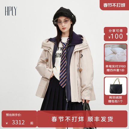 【商场同款】HPLY荷比俪2025冬新款白鹅绒可拆卸内胆风衣式羽绒服