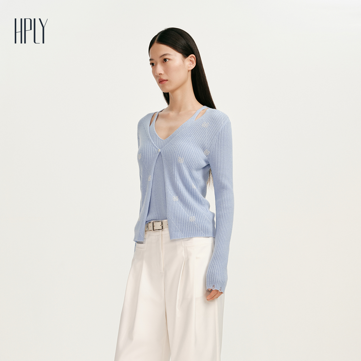 【商场同款】HPLY荷比俪2025春季新款女含绵羊毛山羊绒提花针织衫