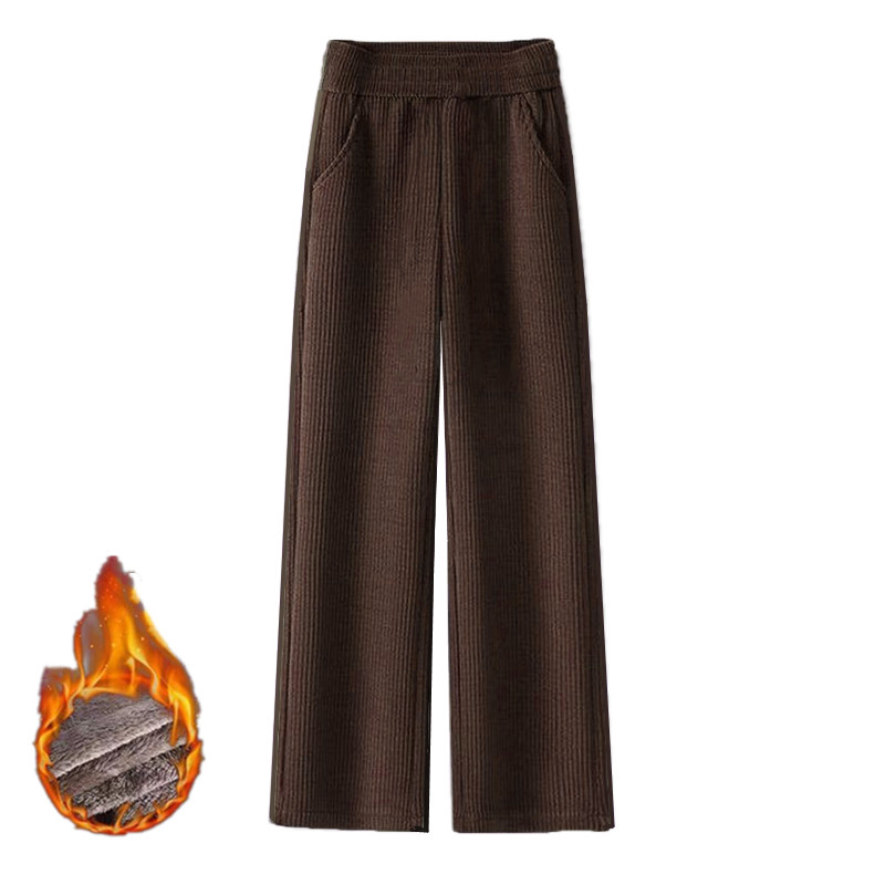 直筒灯芯绒裤子女款高腰显瘦秋冬新款加绒中年妈妈保暖加厚阔腿裤
