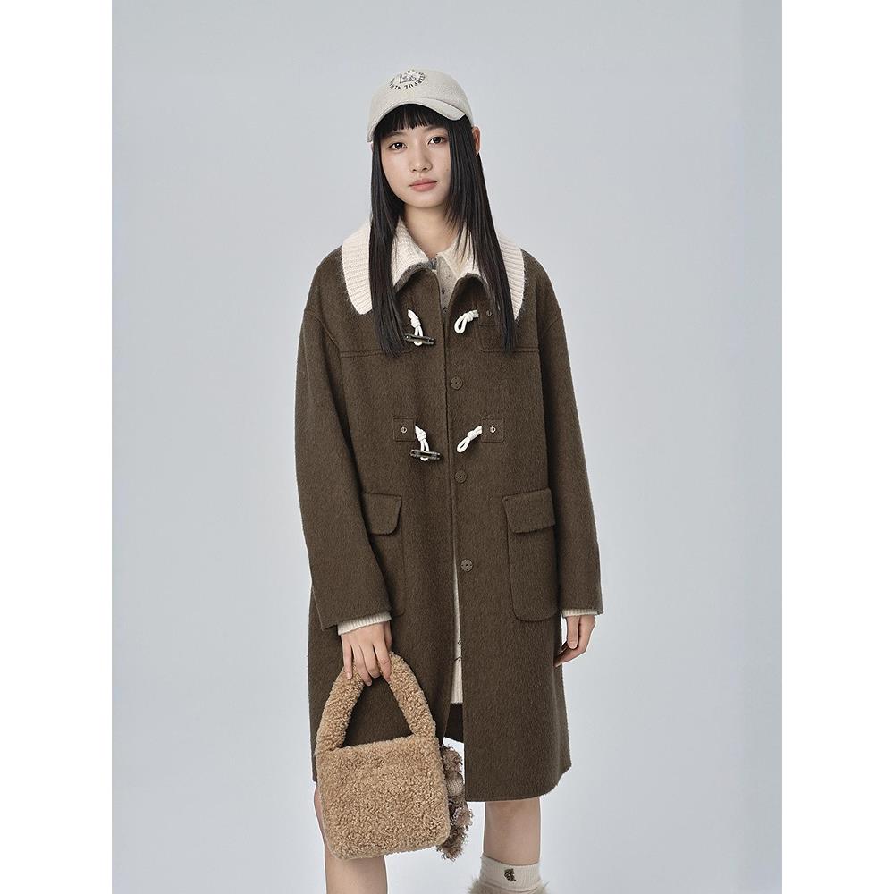 【商场同款】甜美针织拼接翻领毛呢外套秋冬中长款大衣C2AAF4333
