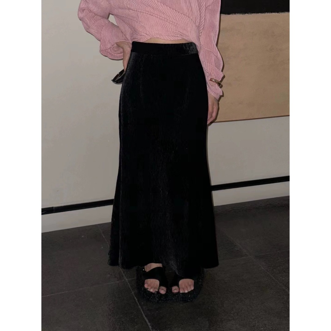 高级金丝绒气质秋冬2025褶皱丝绒鱼尾半身裙新款长裙高腰显瘦裙子