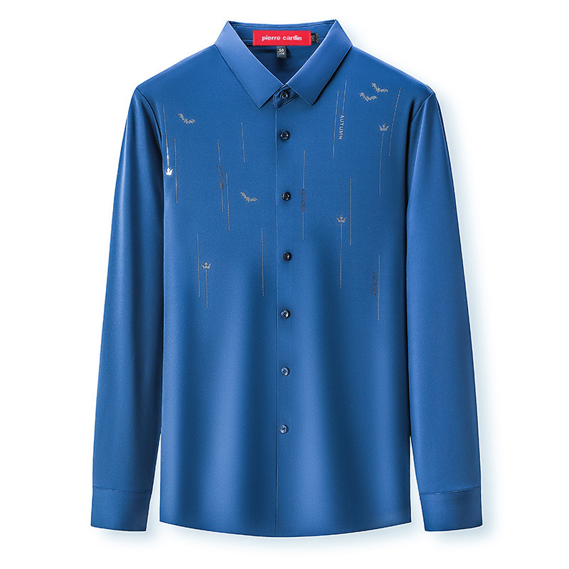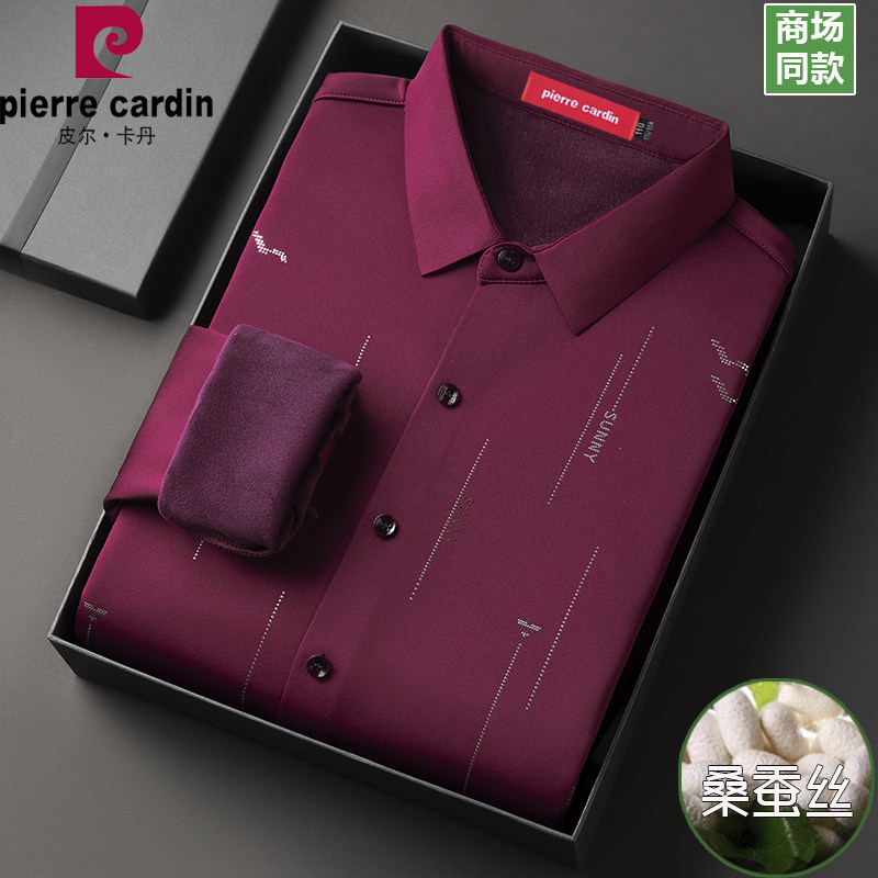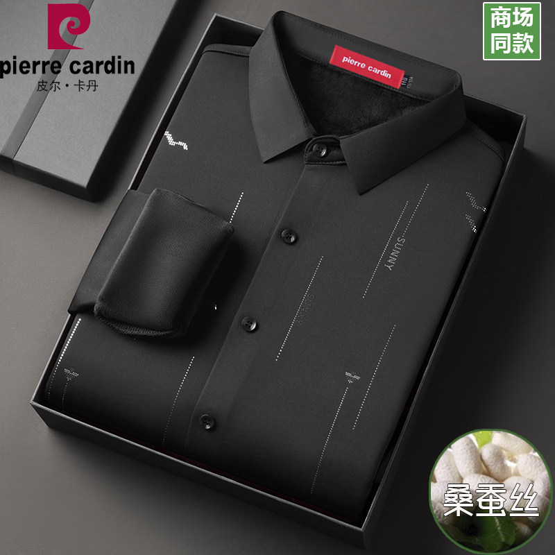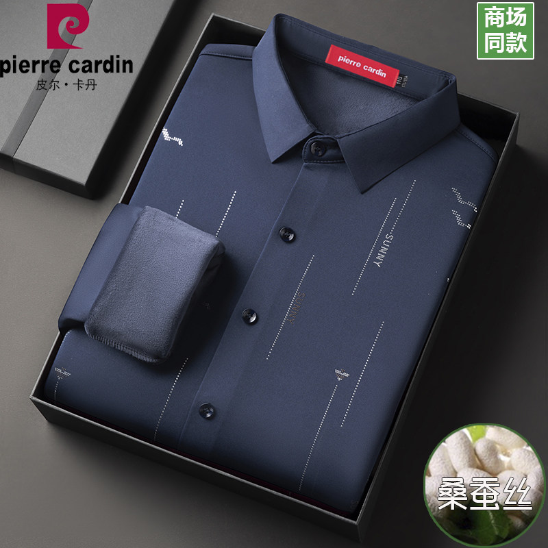 皮尔卡丹正品桑蚕丝衬衫男长袖春秋薄款商务休闲条纹免烫抗皱衬衣