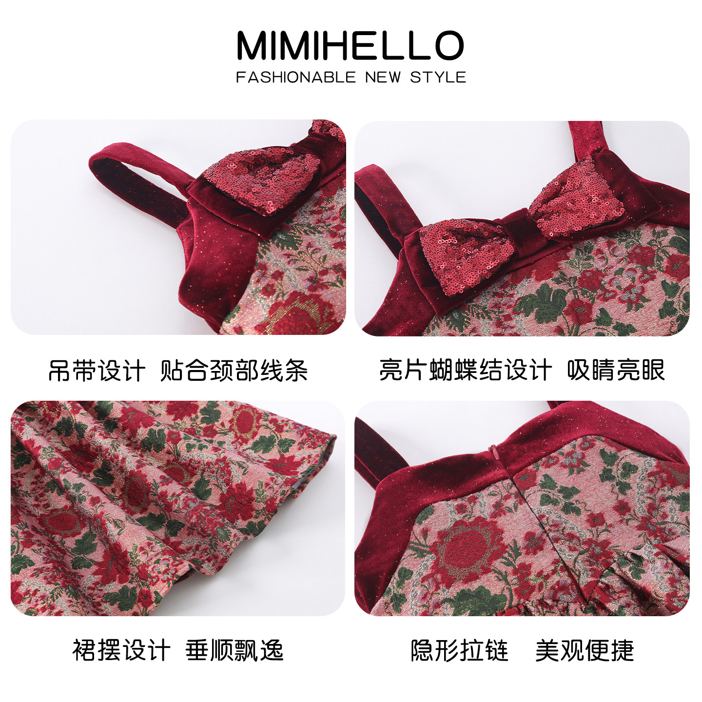 女童加绒连衣裙冬装2025新款儿童国风新中式织锦提花吊带裙背心裙