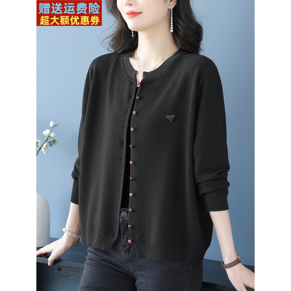 中年妈妈春秋新款圆领针织开衫中老年女装时尚宽松加大码毛衣外套