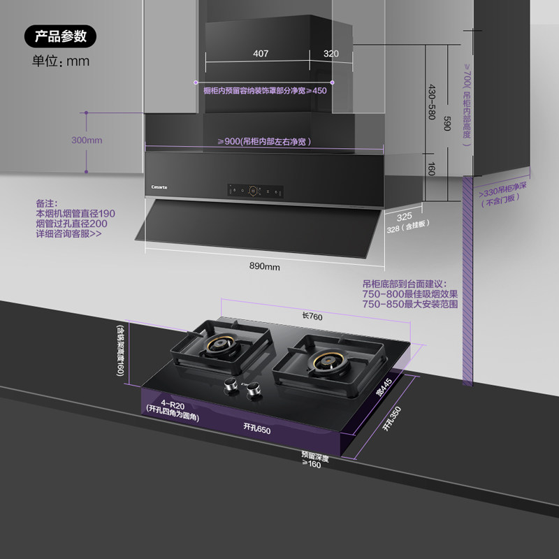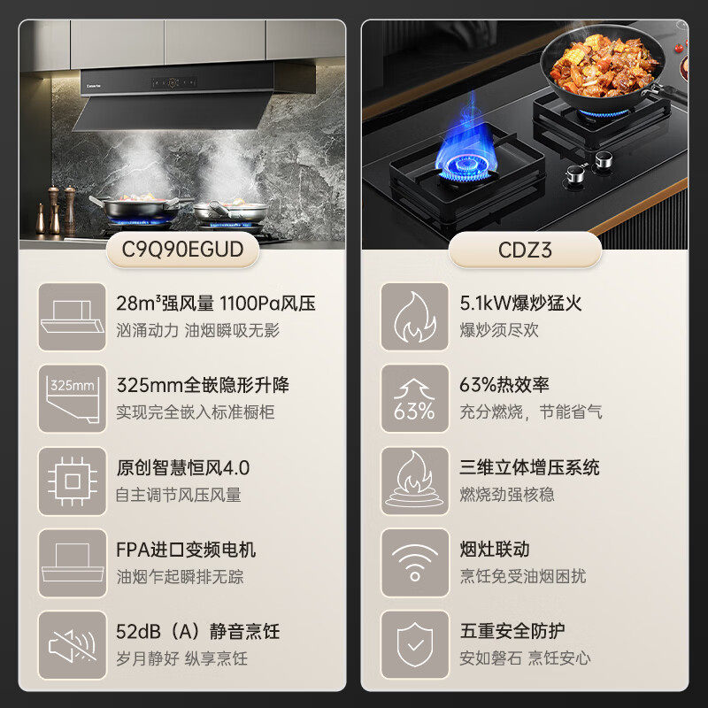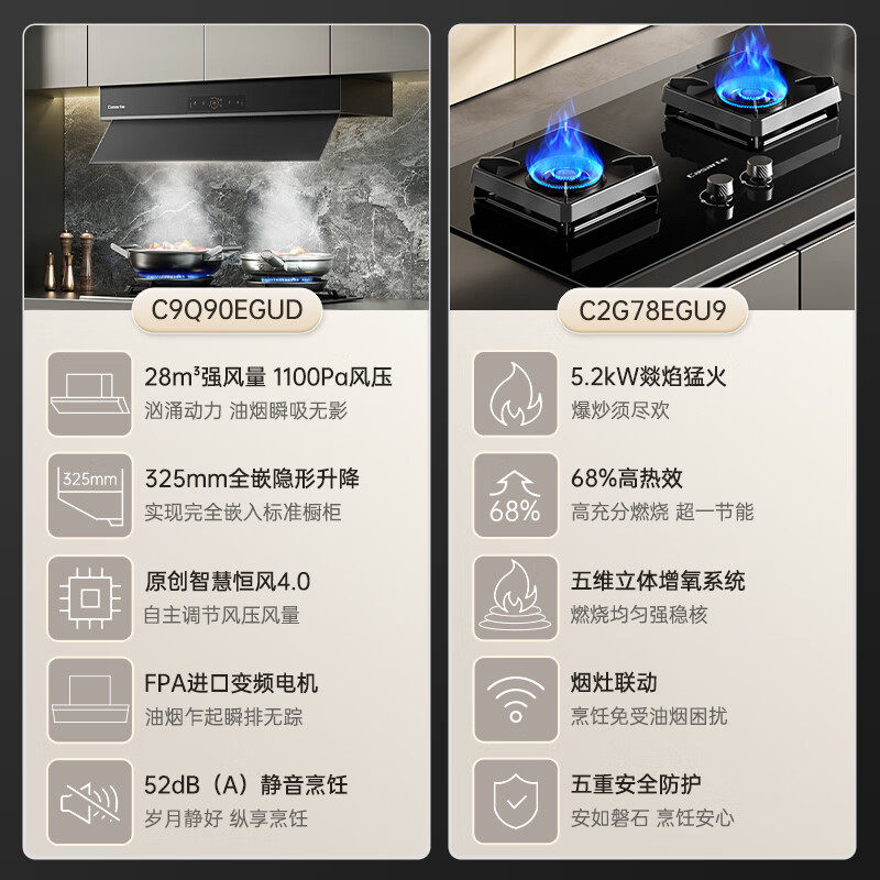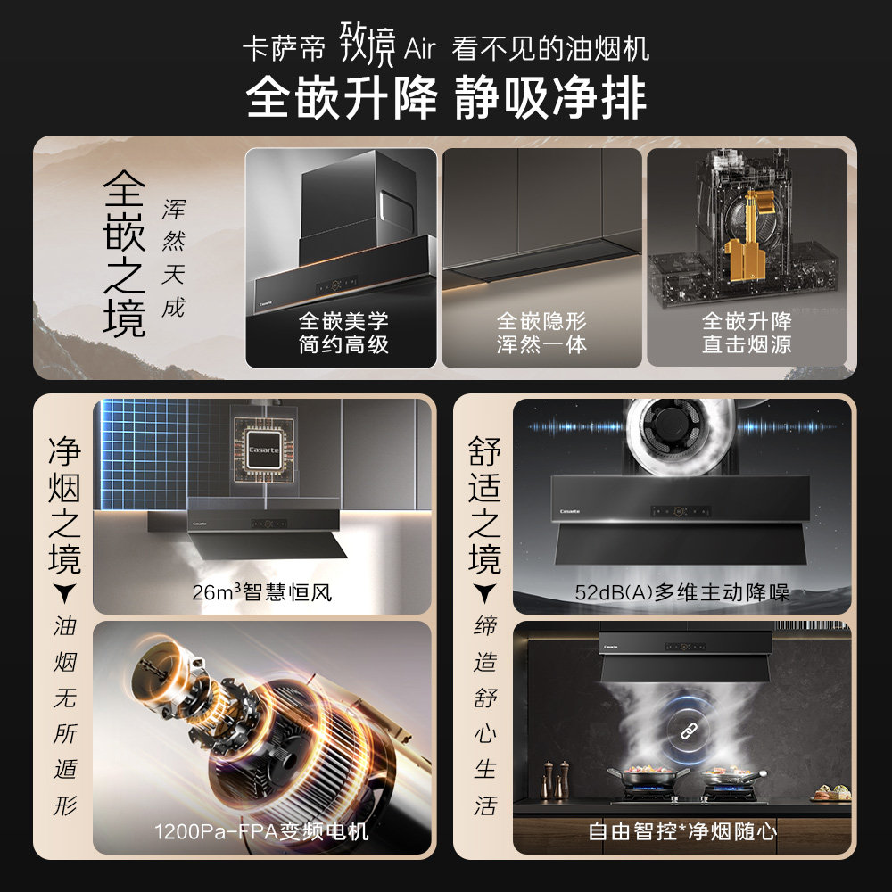 卡萨帝致境Q9钢琴黑全嵌变频升降抽油烟机烟灶联动套装 C9Q90EGUD