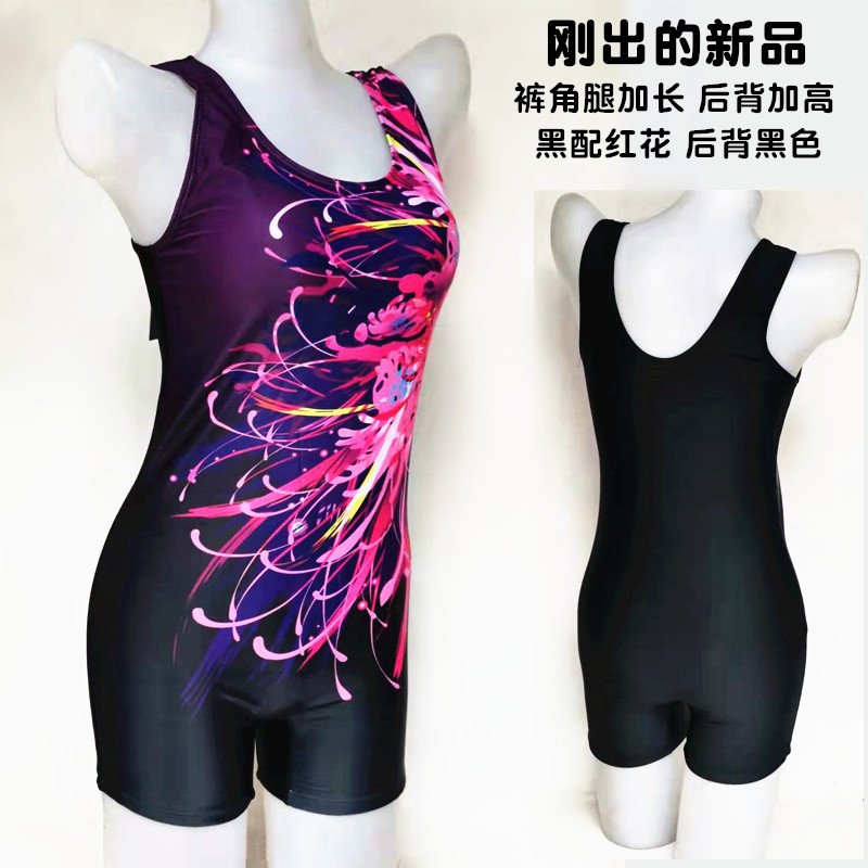 泳衣女士连体平角保守运动温泉显瘦遮肚印花大码专业新款2025游装