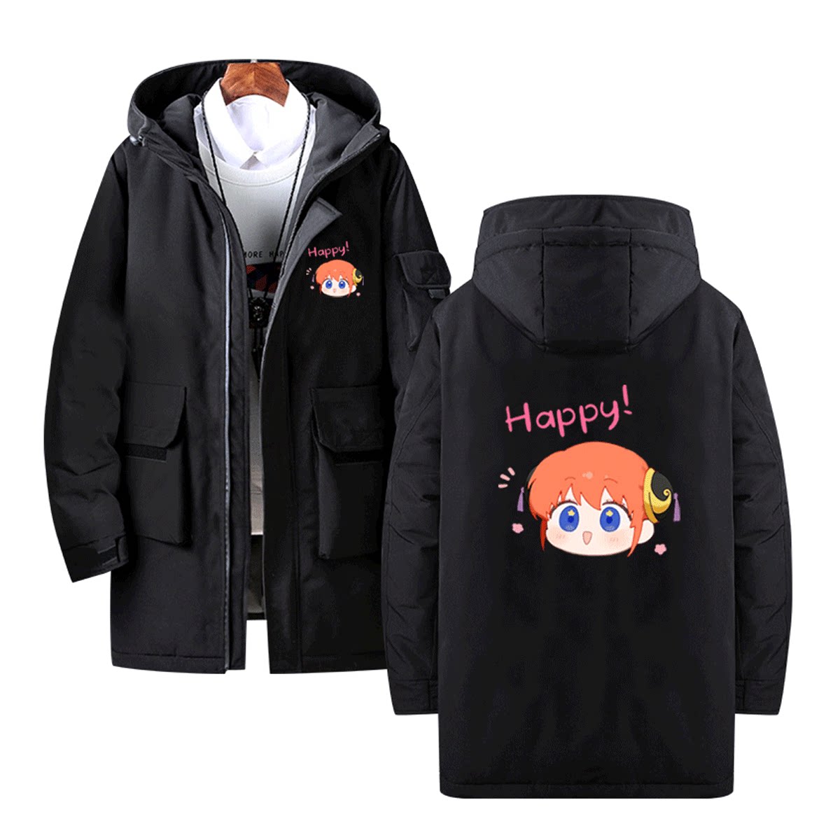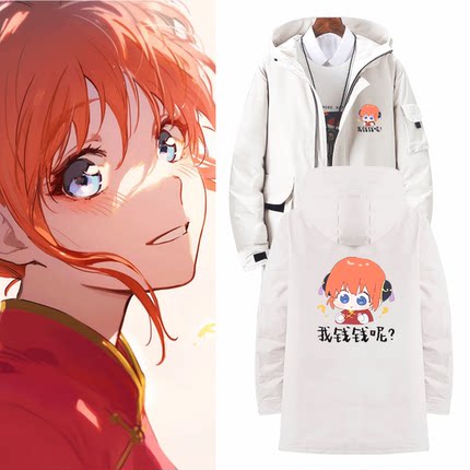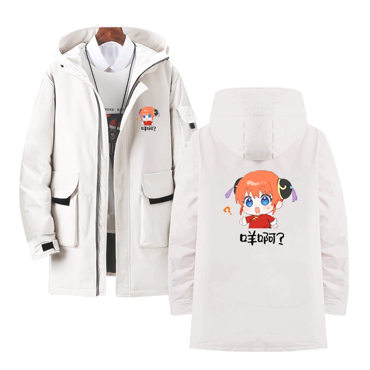 银魂神乐动漫表情包周边男女青少年冬二次元定制连帽中长款羽绒服