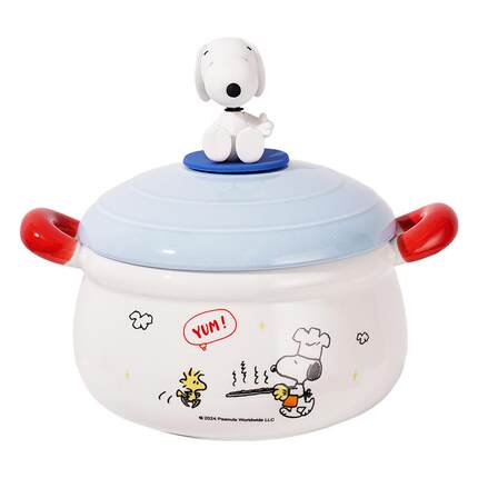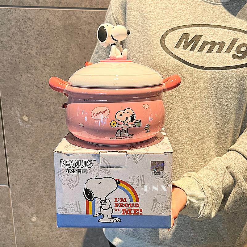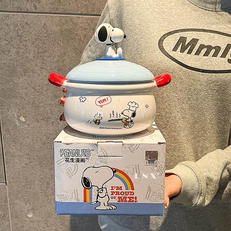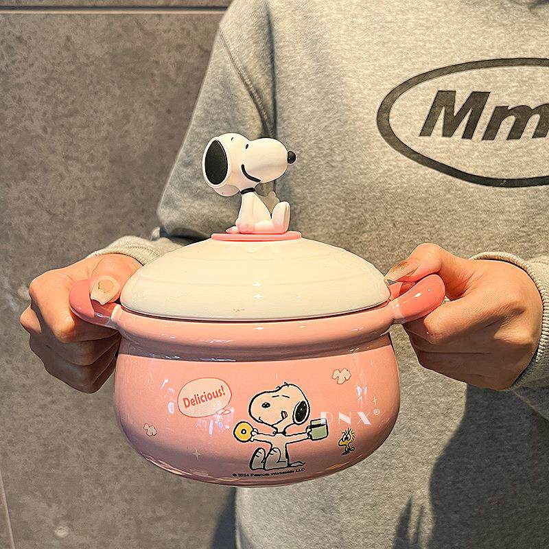史努比爱陶瓷泡SJ6045-1女面碗可家汤碗卡通双耳大容量带用盖公仔
