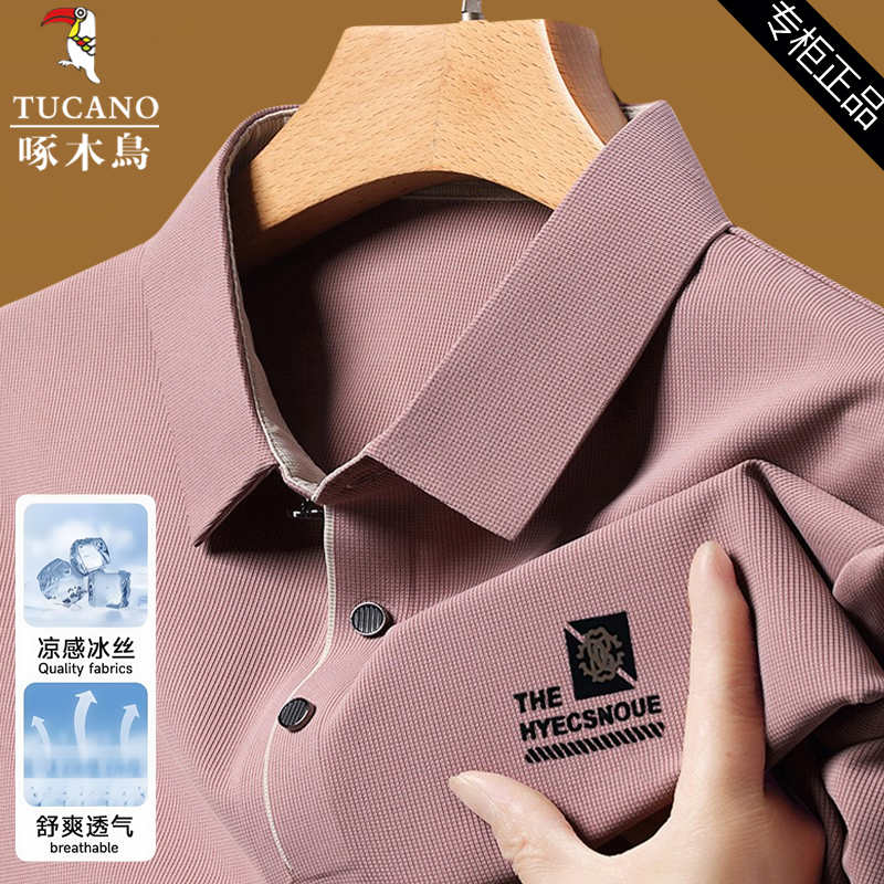 啄木鸟夏季冰丝短袖t恤男士高档翻领polo衫免烫抗皱休闲透气上衣