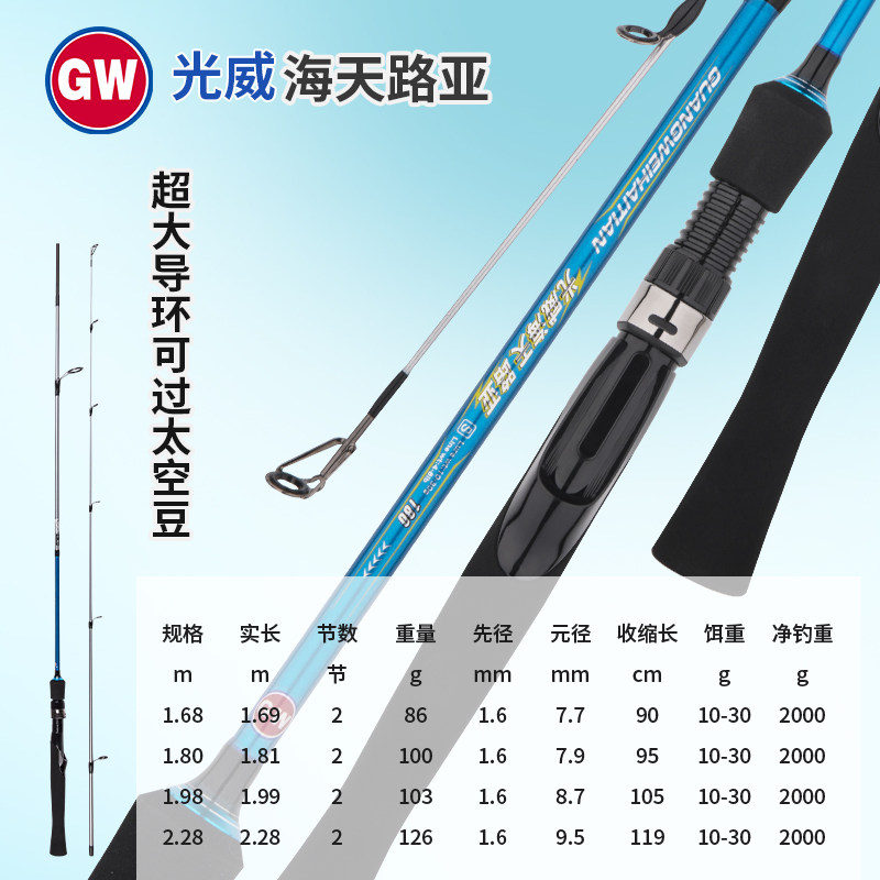 光威海天路亚ML远抛路滑路亚直柄超大导环滑漂钓鱼竿球球钓法