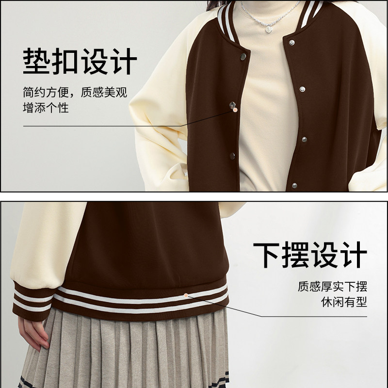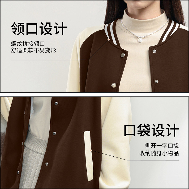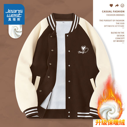 KMV真维斯美式外套女2026新款夹棉棒球服秋冬款咖色加绒复古夹克