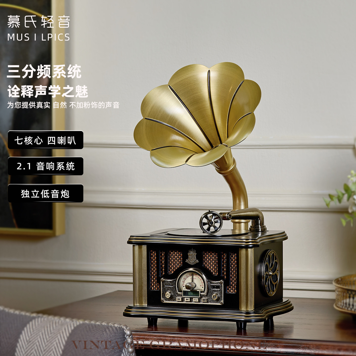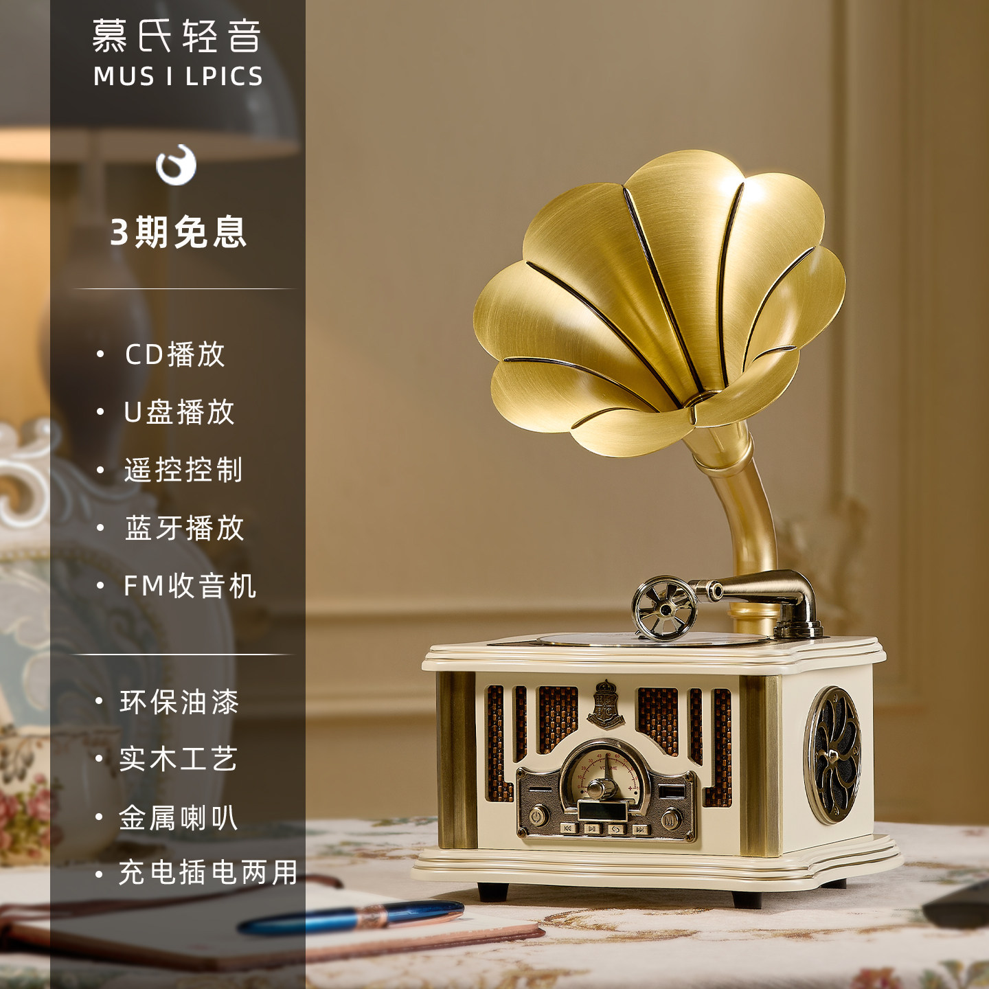 复古留声机摆件蓝牙音响客厅老式高端cd机音箱生日礼物老式唱片机