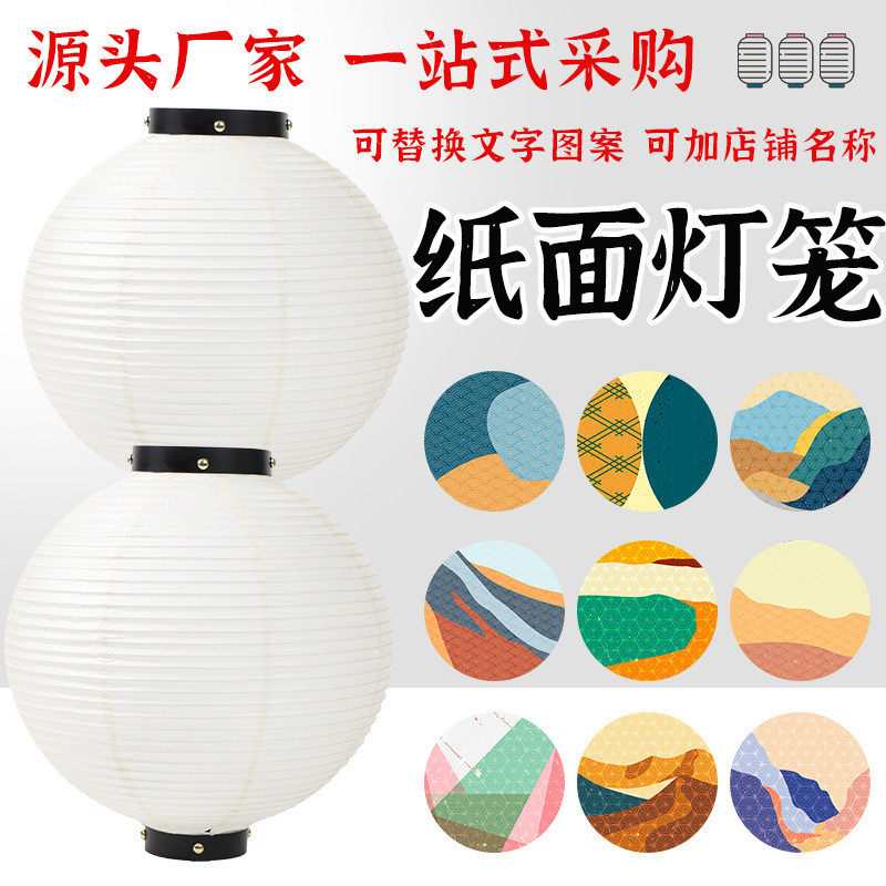 日式和风日料店居酒屋室内装饰圆形防水发光纸灯笼广告定制折叠灯