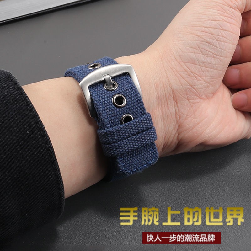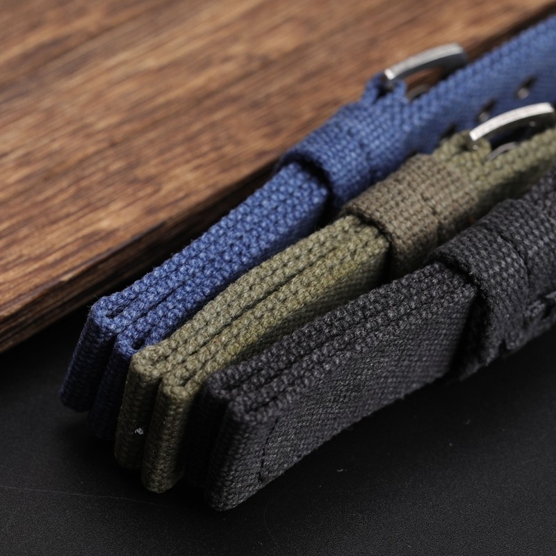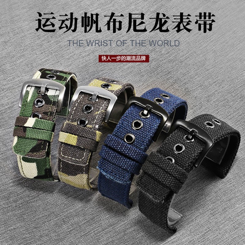 双层帆布厚料表带20 22 24MM黑蓝绿适配精工 海鸥防水男登山表链