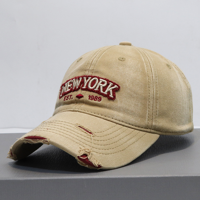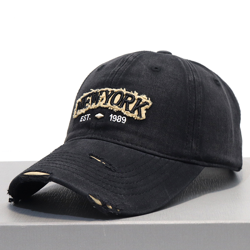 男女春秋破洞刺绣字母牛仔棒球帽子软顶复古做旧休闲鸭舌帽遮阳帽