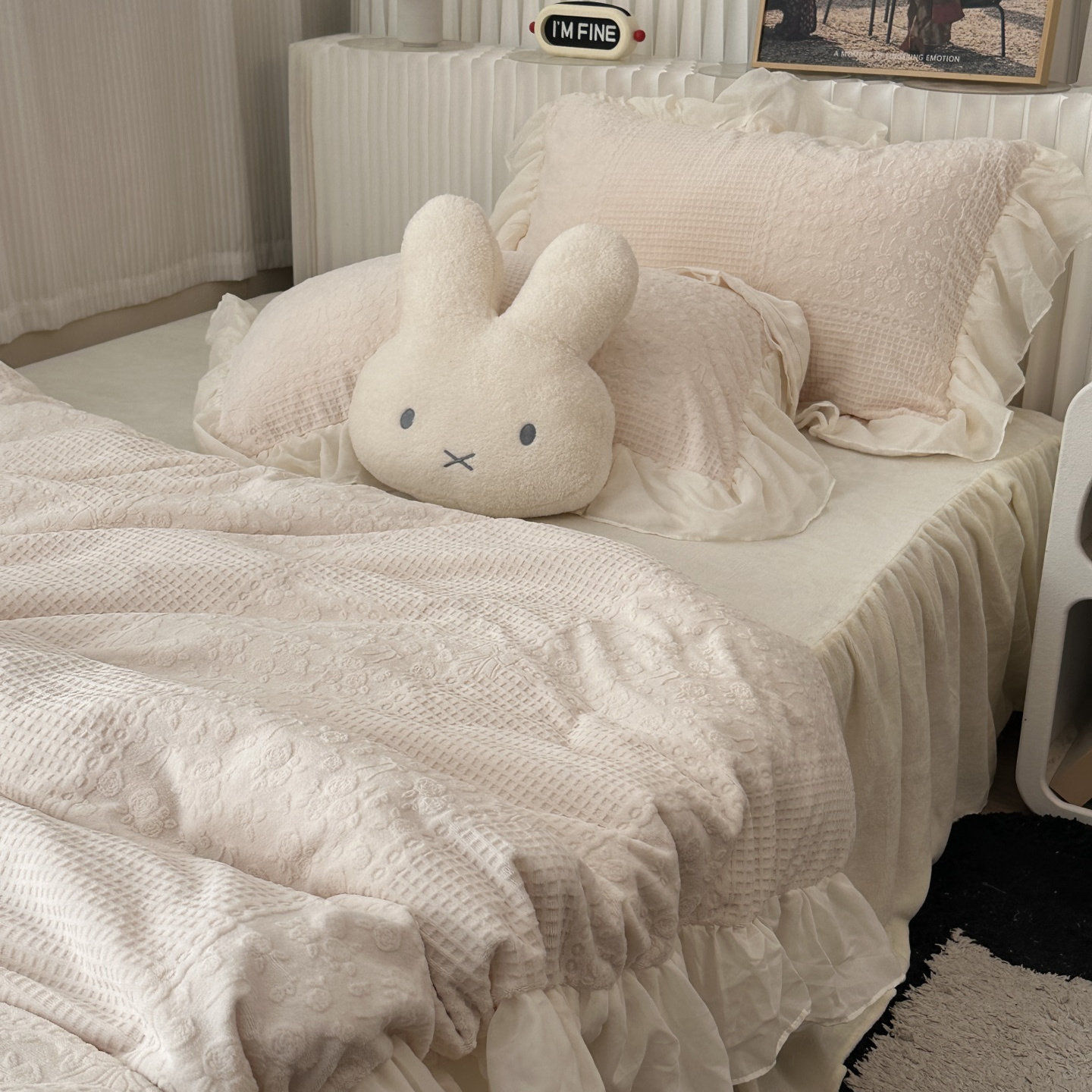 無绵丨奶油花边烂花牛奶绒四件套
