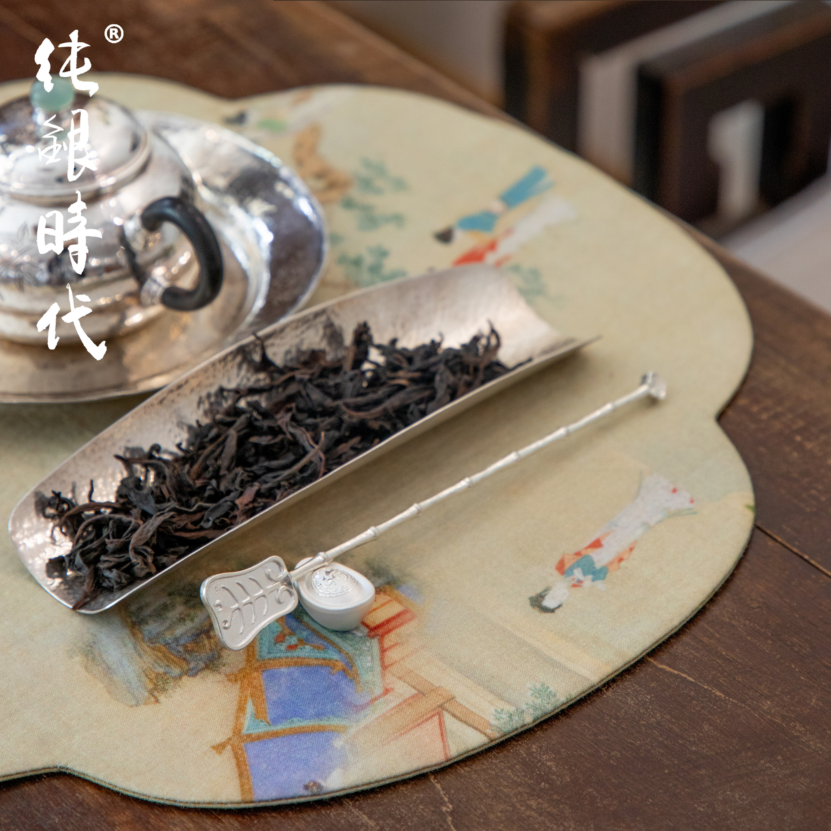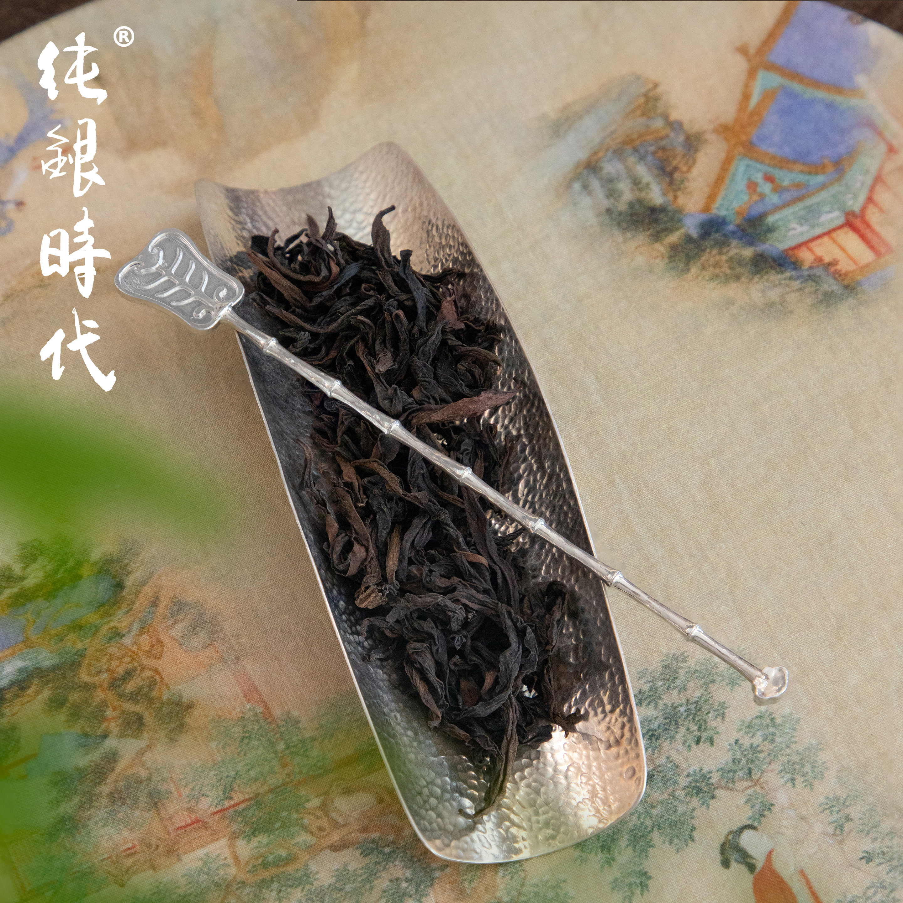 纯银时代 芭蕉茶拨茶则纯银999茶匙手工竹节功夫茶具中式茶道配件