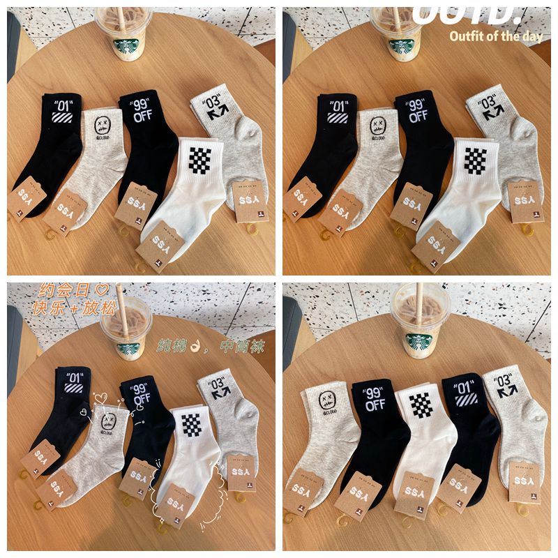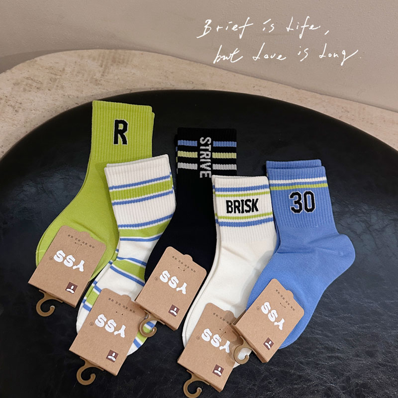 儿童袜子纯棉春秋男童宝宝中筒袜女童字母短袜中大童男孩韩国潮袜