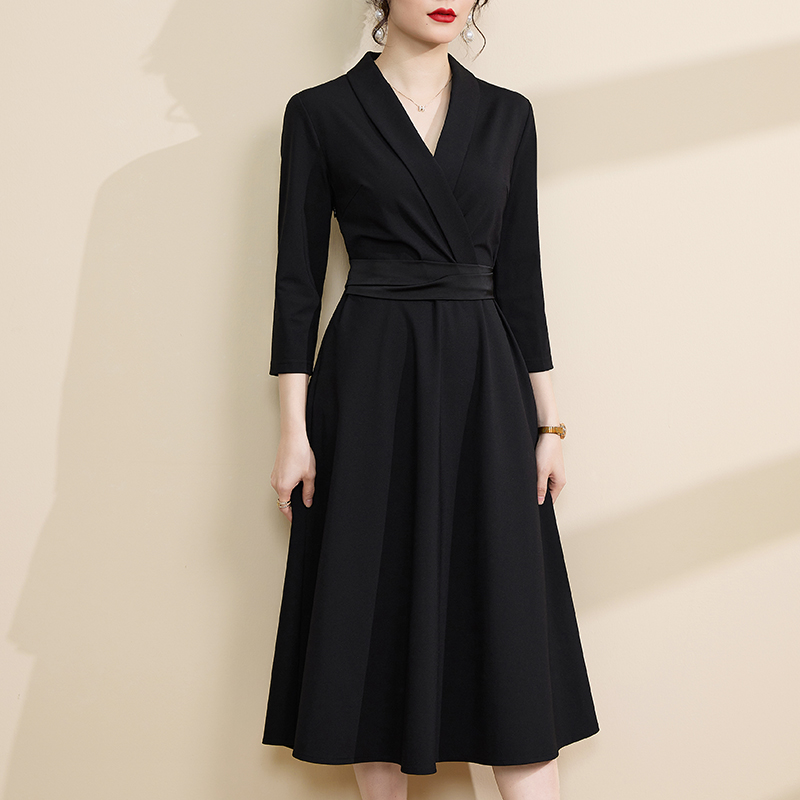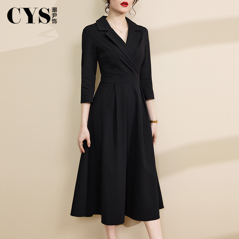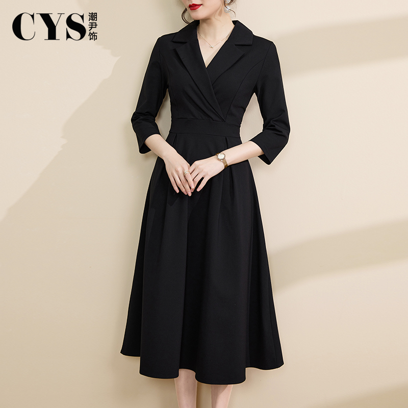 2025秋季新款女装高级感西装连衣裙收腰显瘦气质通勤黑色a字裙子