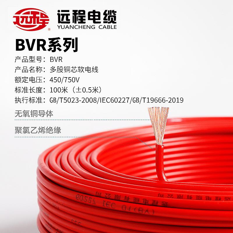 远程电线单芯软线1.5 2.5 4平方国标BVR家装用铜线铜芯 国标电缆