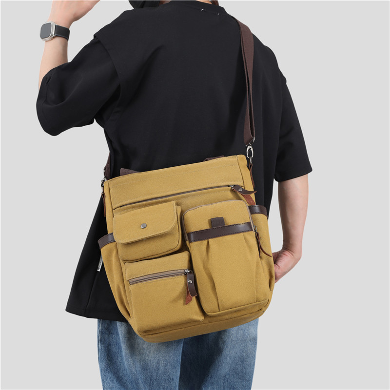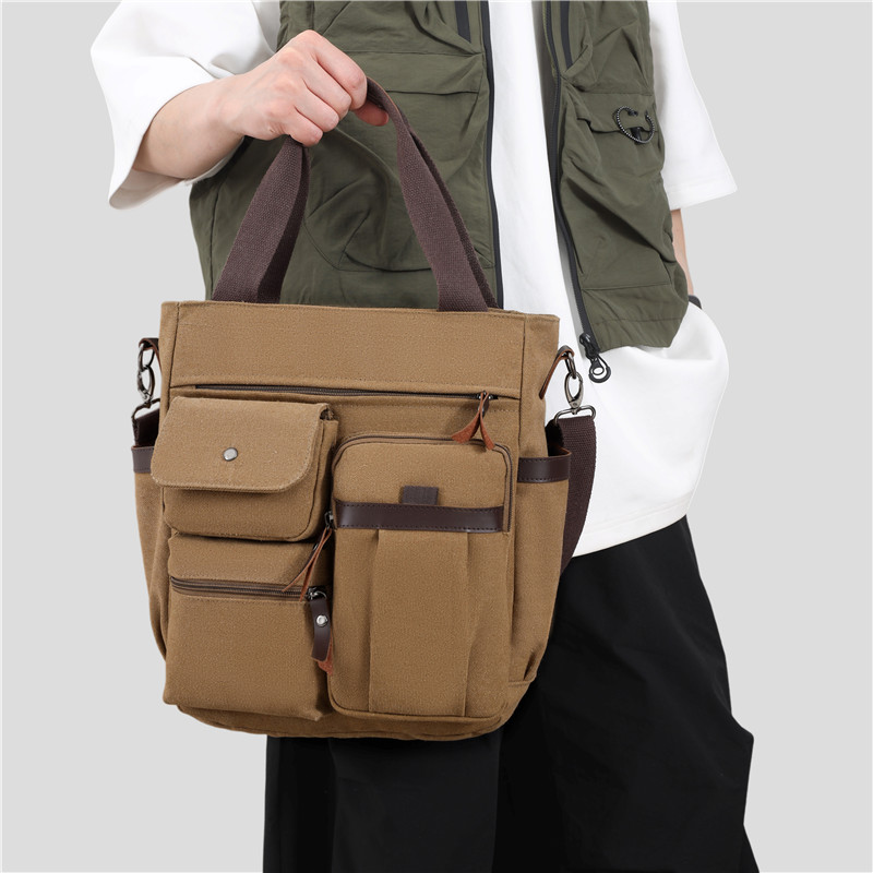 商务单肩斜挎包男士多功能手提包多口袋出差公文包竖款大容量背包