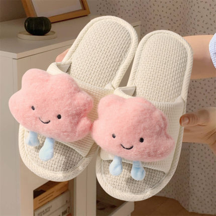 可爱云朵儿童亚麻拖鞋女童防滑秋季新款室内家居大童宝宝棉麻布拖