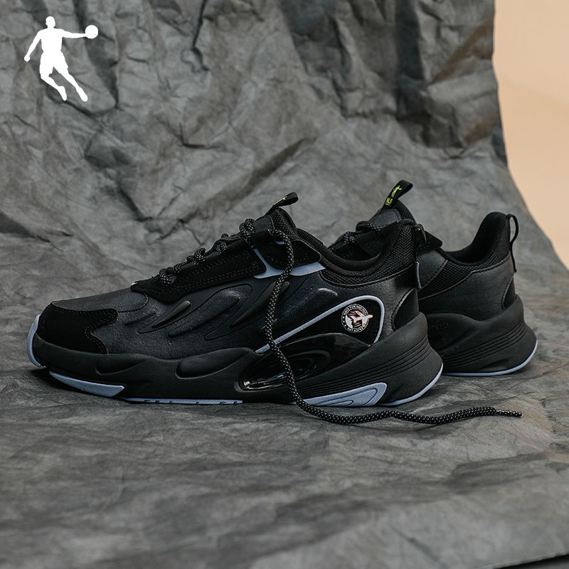 乔丹运动鞋男2025新款皮面防水官方正品老爹鞋厚底气垫休闲鞋男生