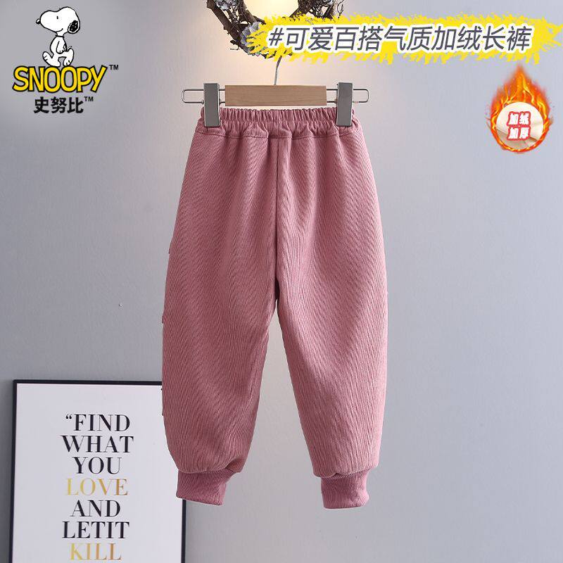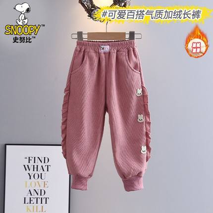史努比女童裤子春秋冬新款可爱粉色休闲裤小女孩兔子束脚新款童裤