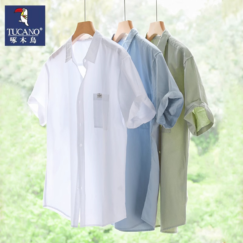 啄木鸟男士纯棉短袖衬衫夏季薄