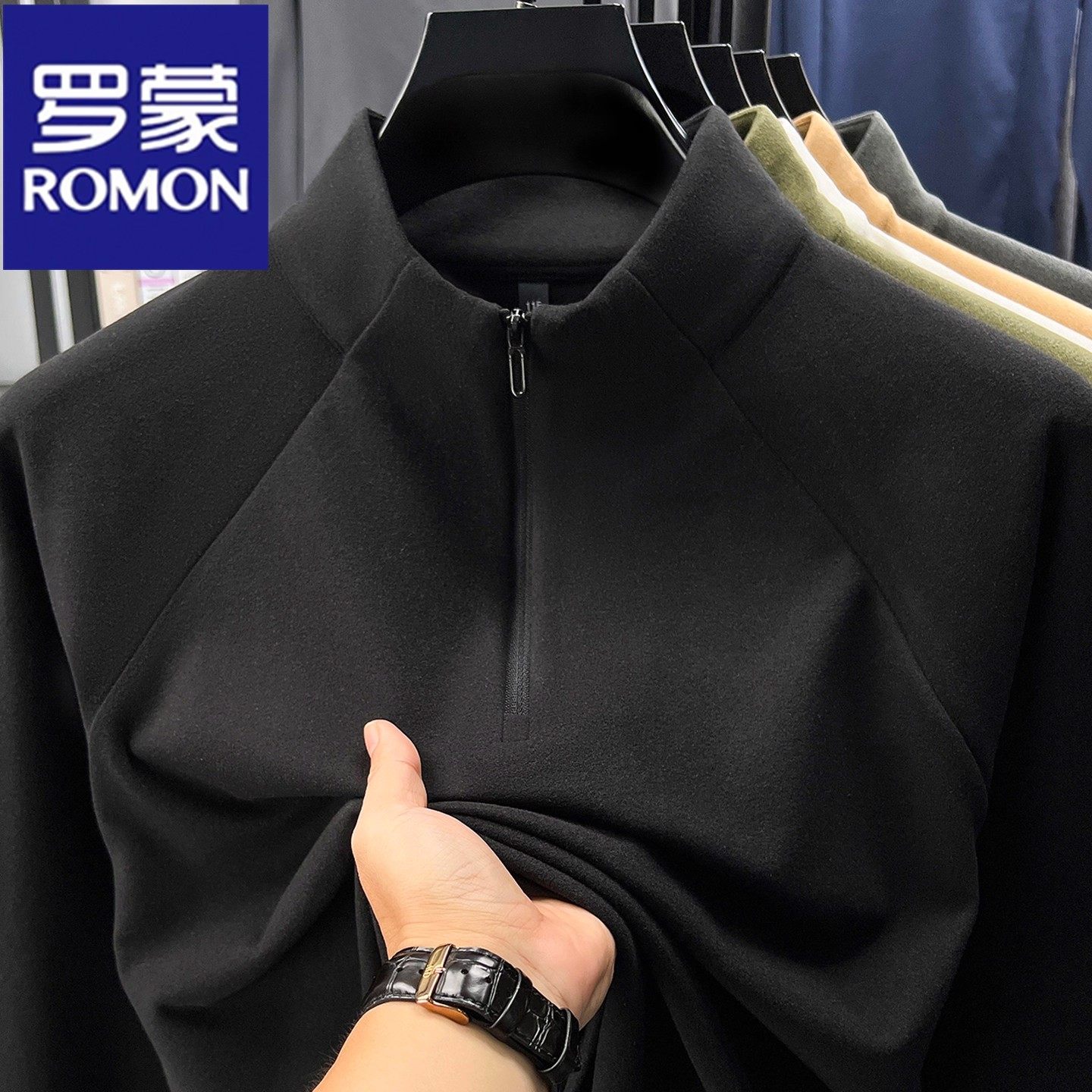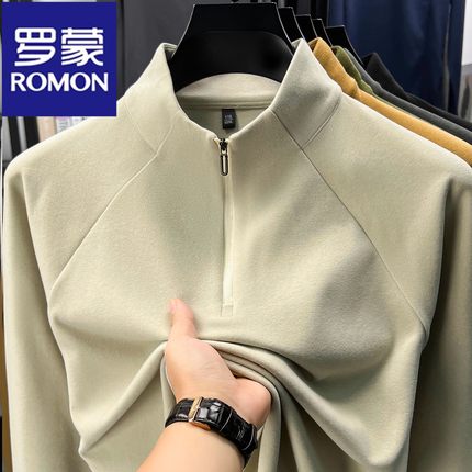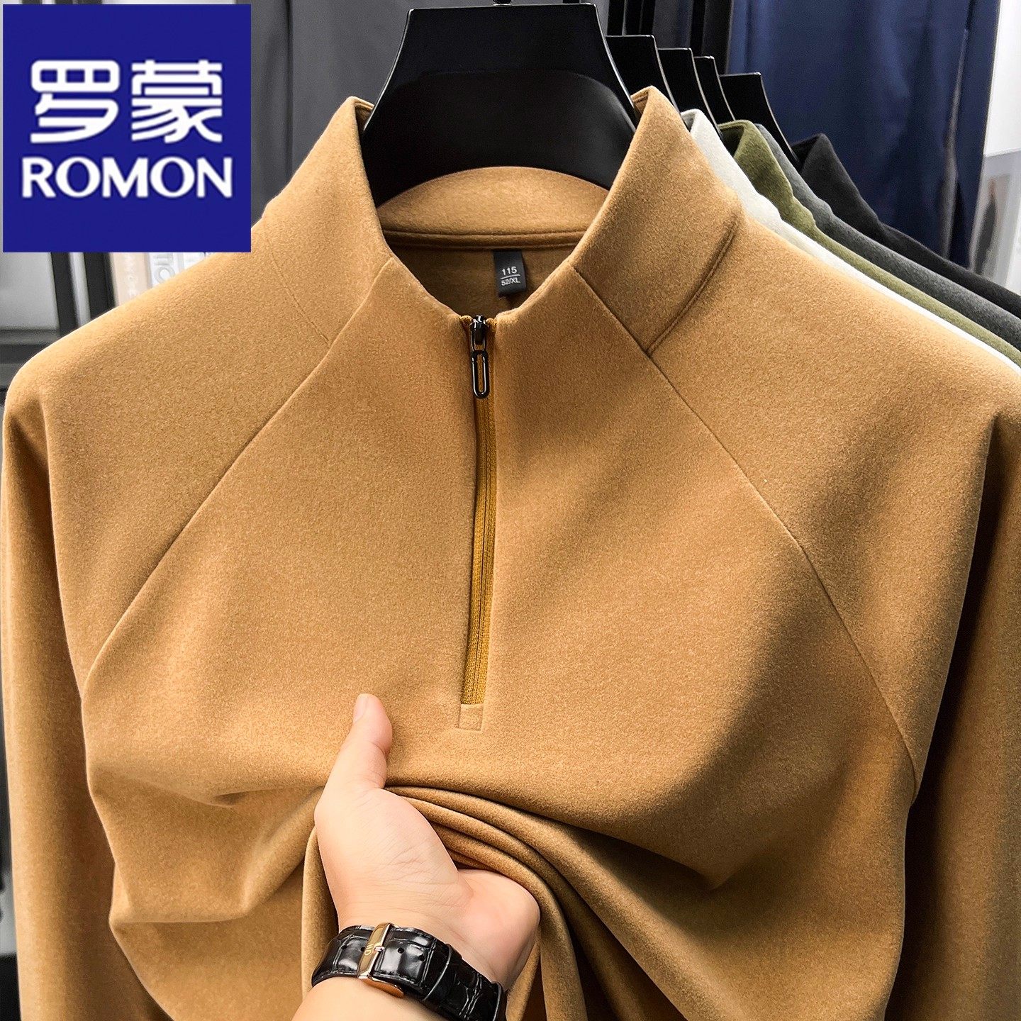 罗蒙秋冬男士打底衫半高领拉链德绒保暖长袖T恤中青年自发热上衣