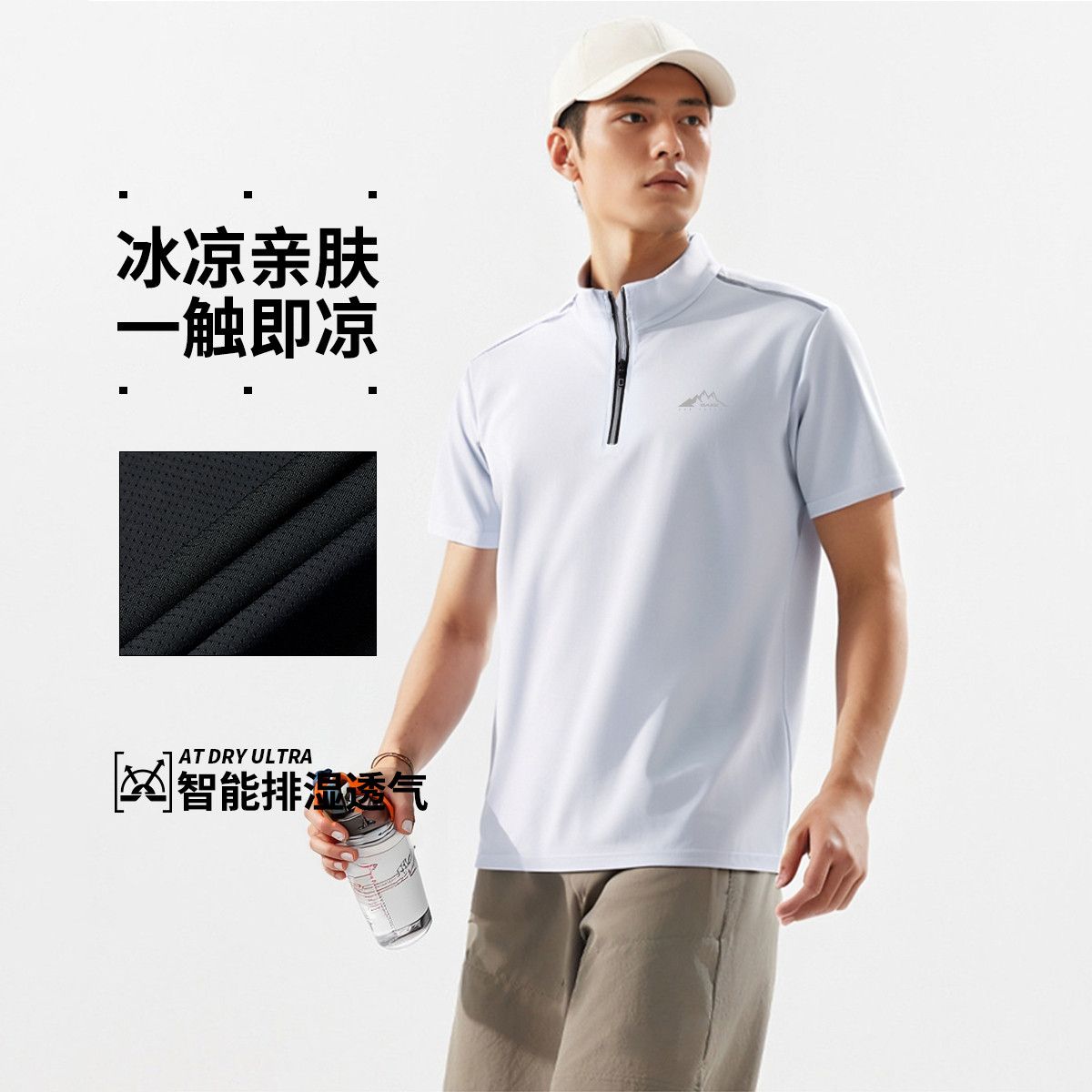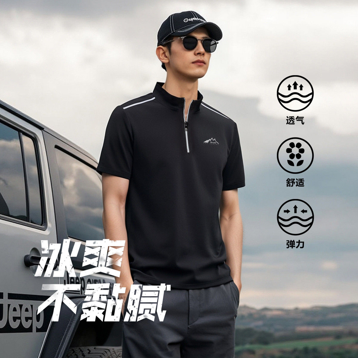 凉感短袖男夏季冰丝宽松半拉链纯色上衣户外健身跑步训练运动T恤