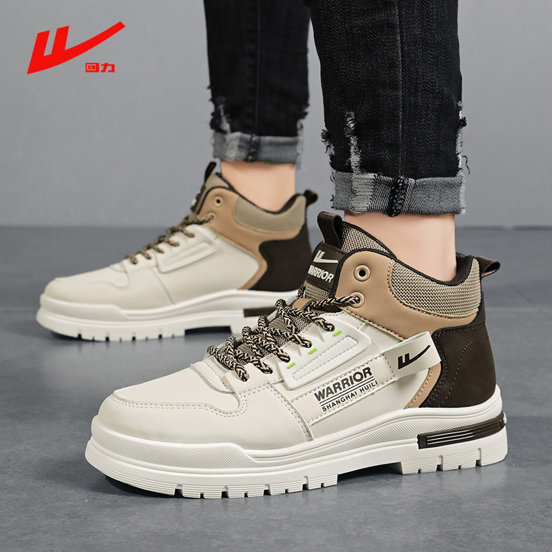 回力【6cm增高鞋】高帮男鞋皮面防水厚底防滑男士户外登山马丁靴