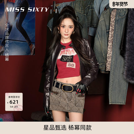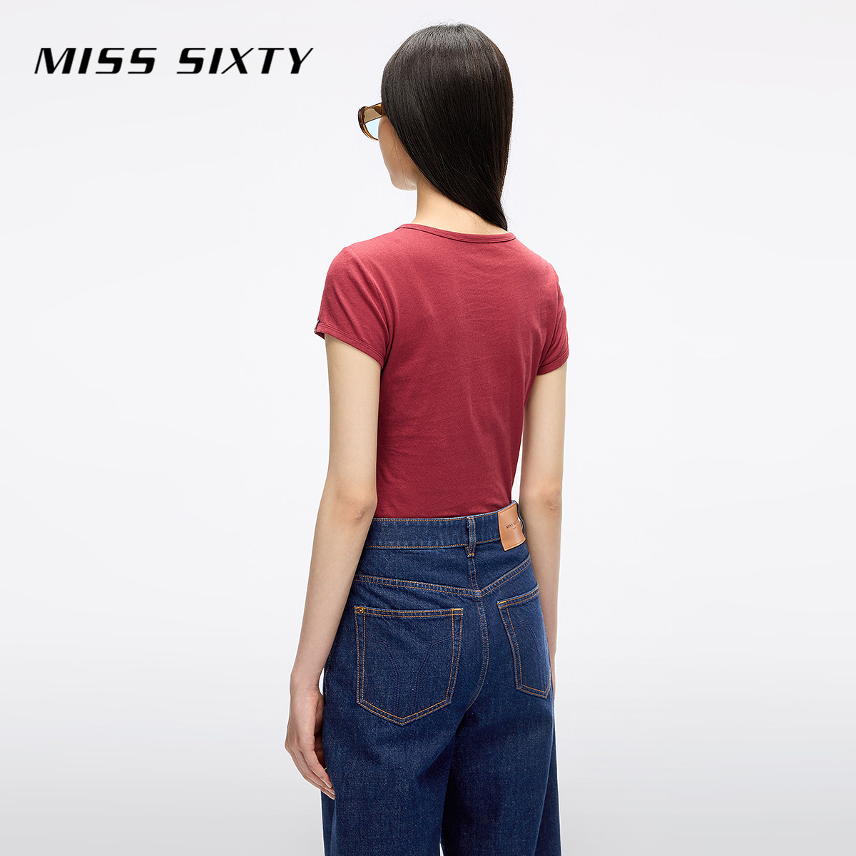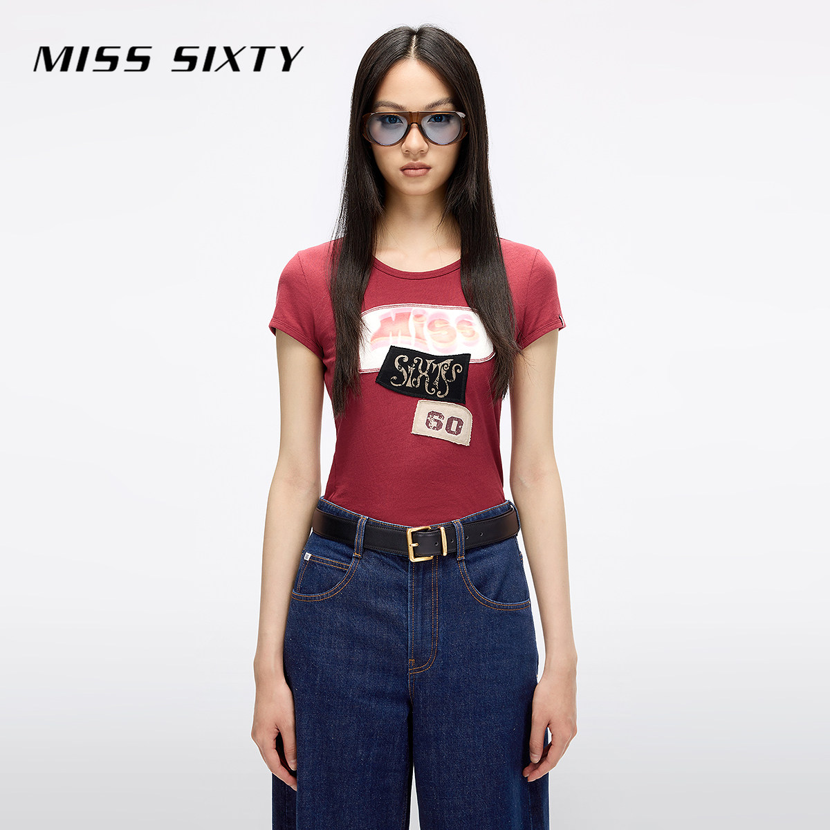 【杨幂同款】Miss Sixty2025秋季新款正肩T恤女棉麻拼贴设计感