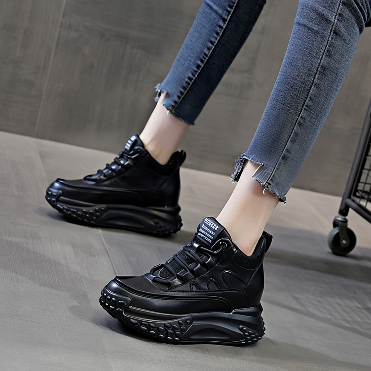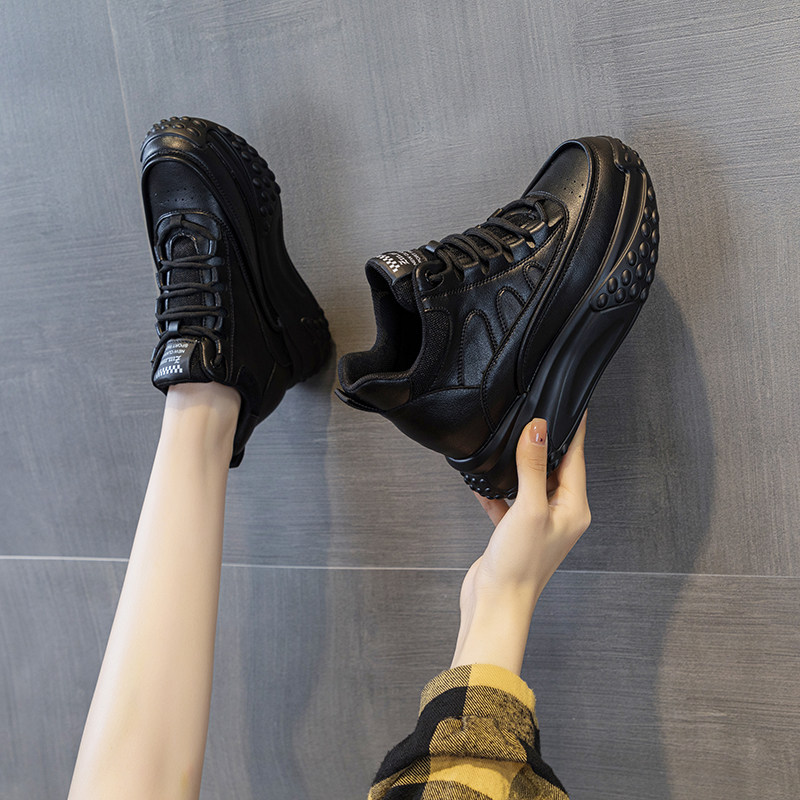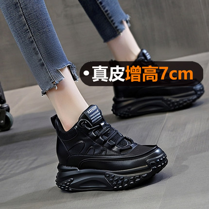超轻软底运动鞋女款黑色旅游鞋2025新款秋冬防滑厚底内增高休闲鞋