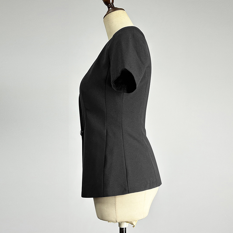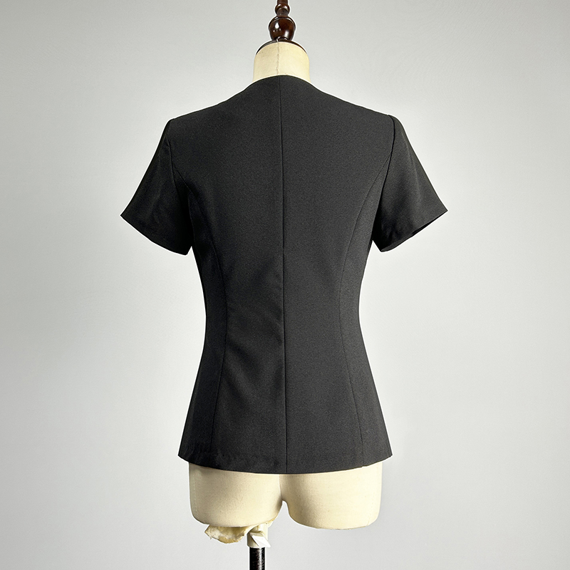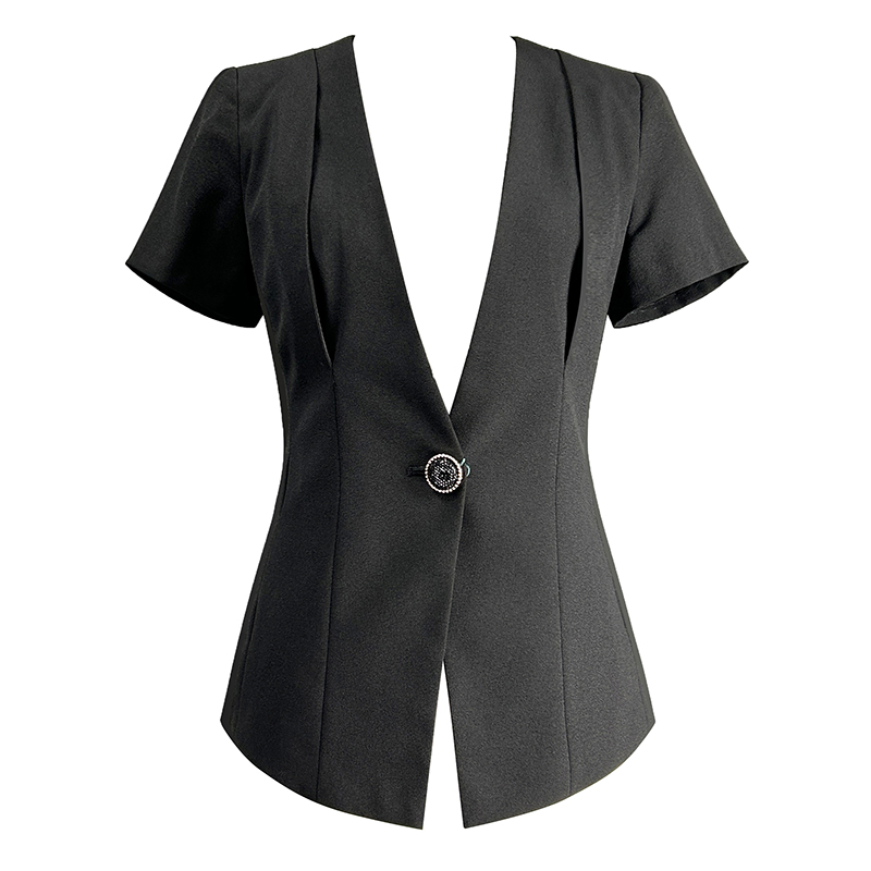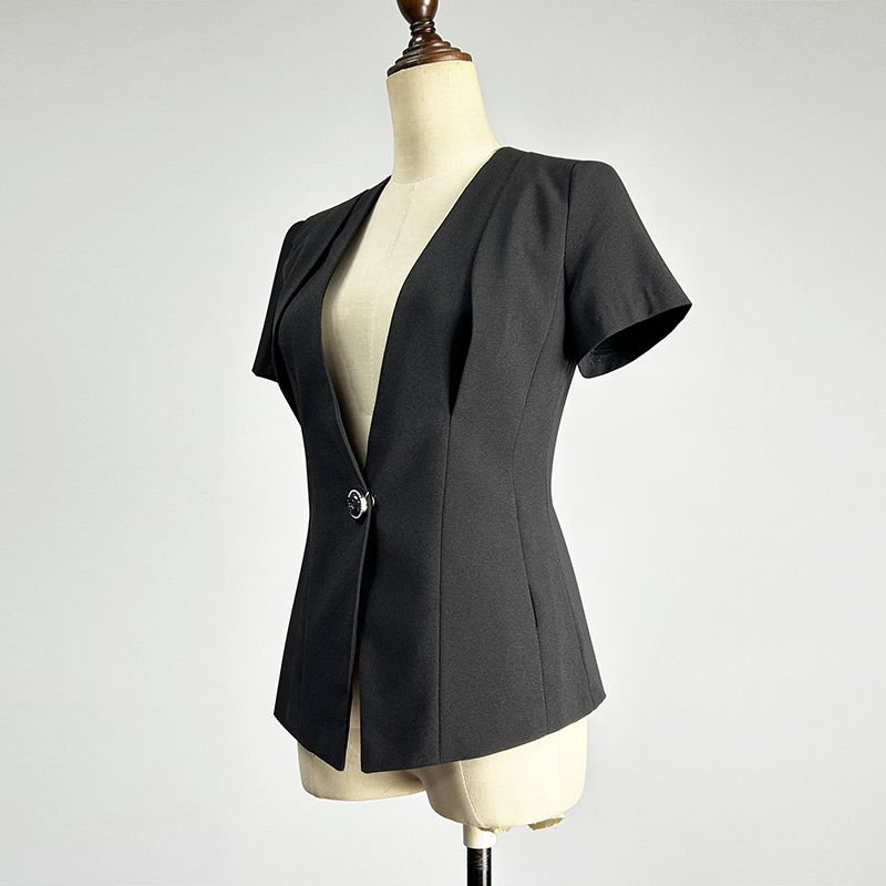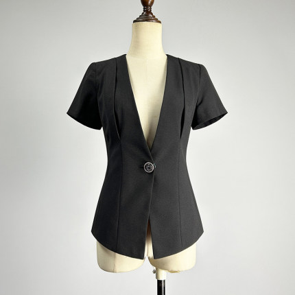 品牌黑色短袖西装女2025职业装修身显瘦单排一粒扣V领短外套薄款