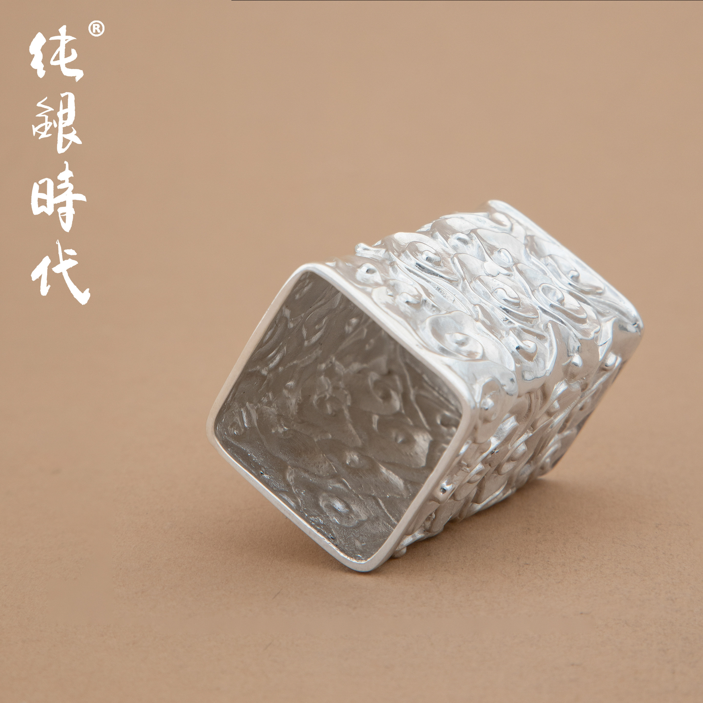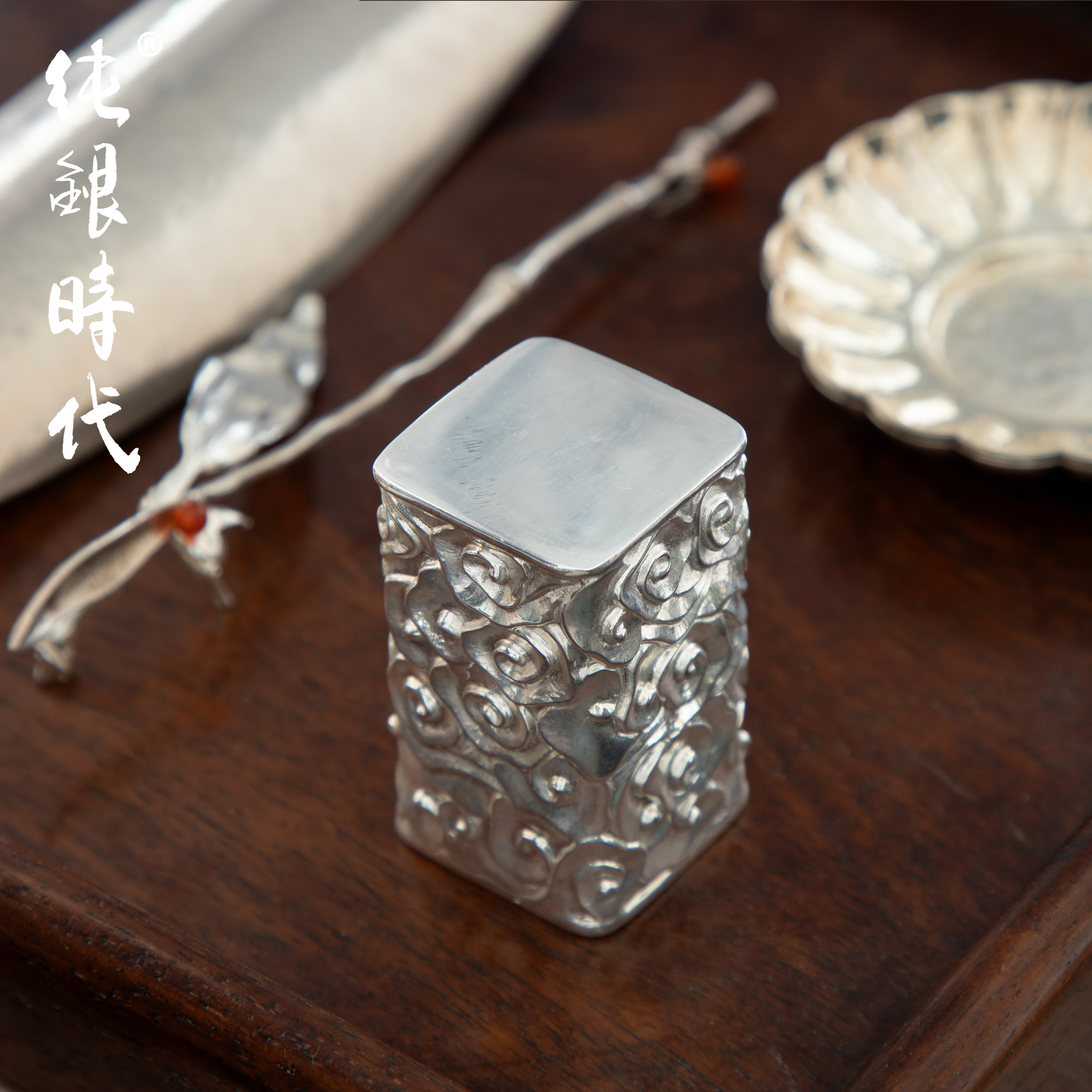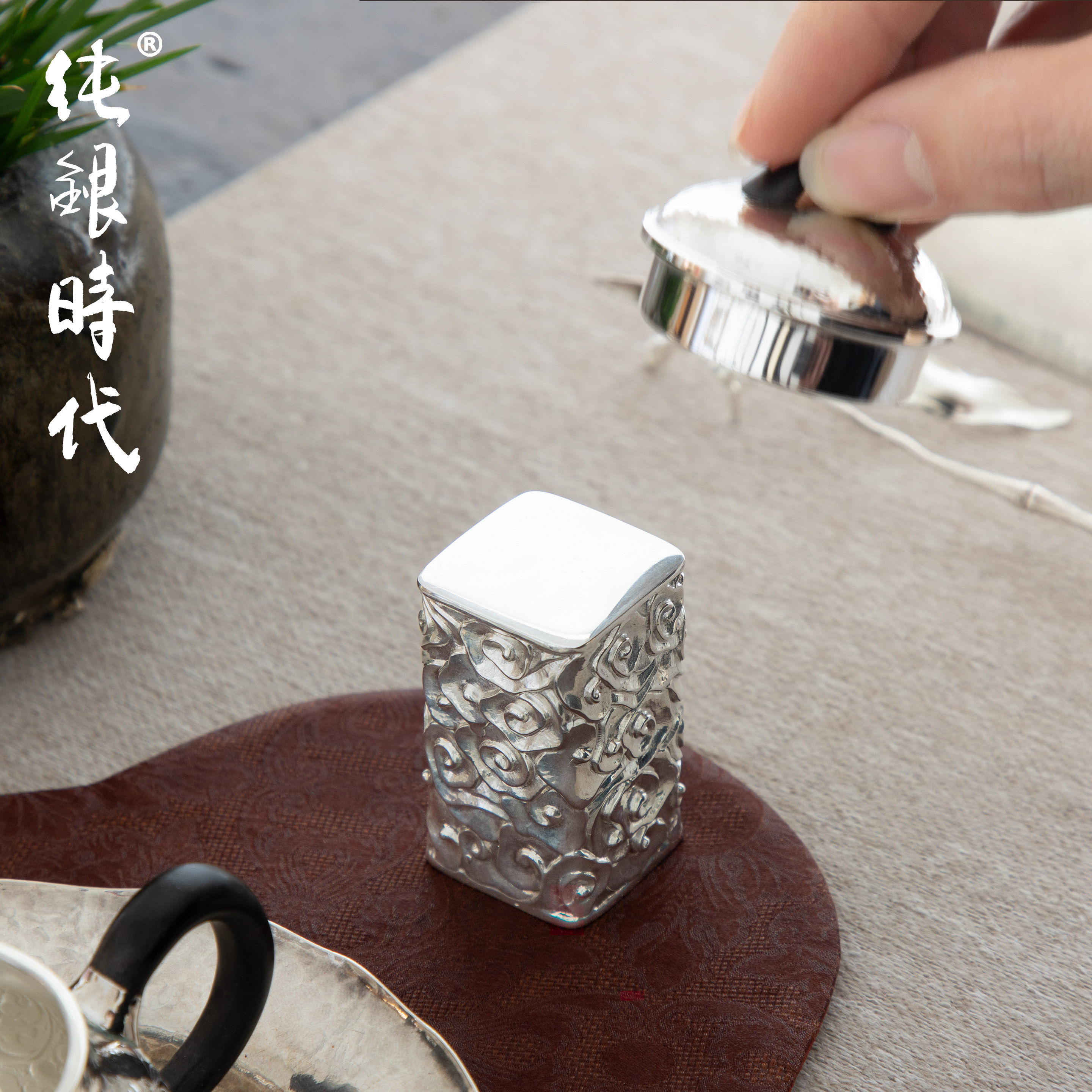 纯银时代手工錾刻祥云盖置盖托