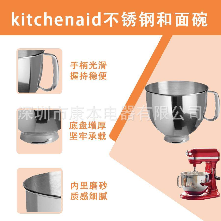kicthe锈nB01id配件厨师机搅拌锅凯膳怡适配4.5QTa/5QT不钢和面碗