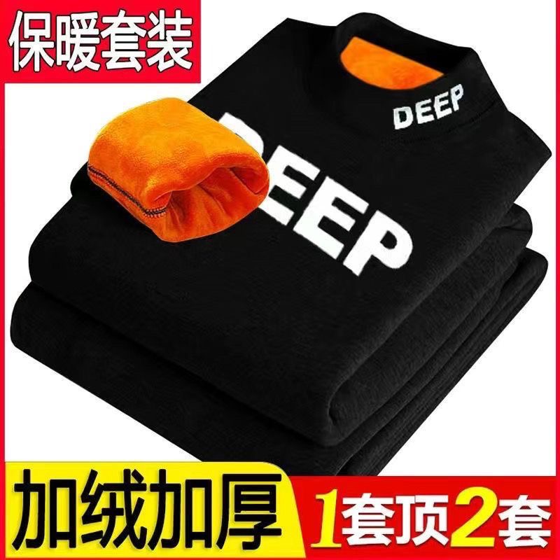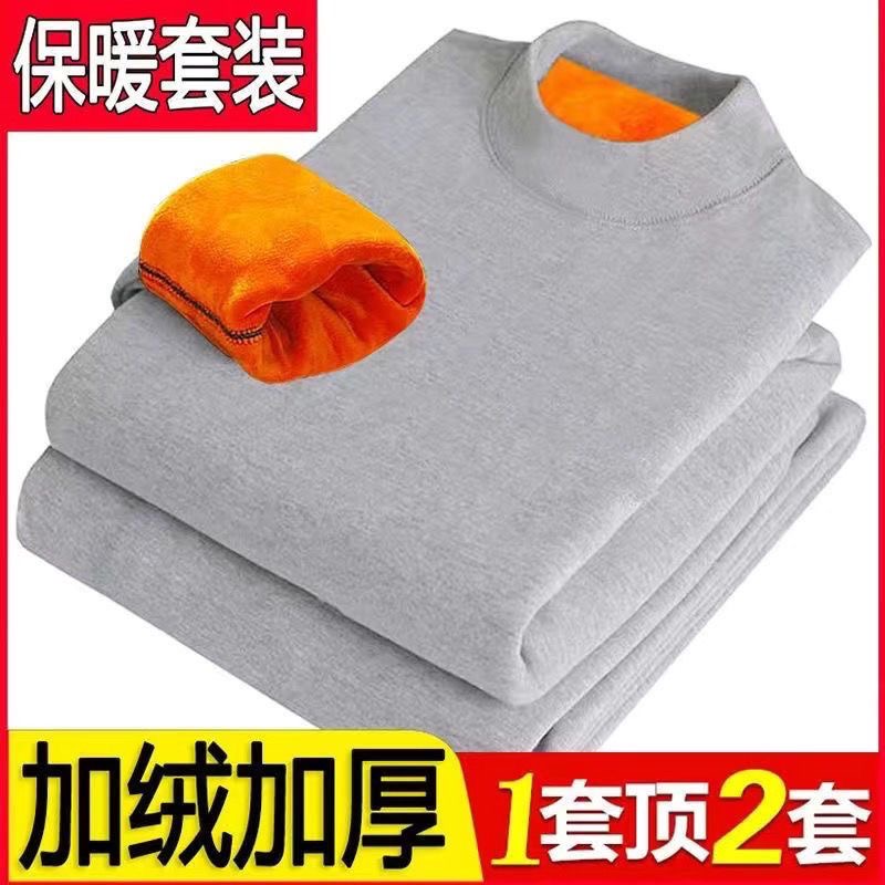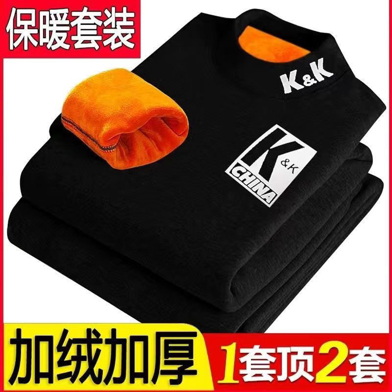 秋冬季加绒加厚保暖内衣套装男半高领修身学生黄金绒防寒秋衣秋裤