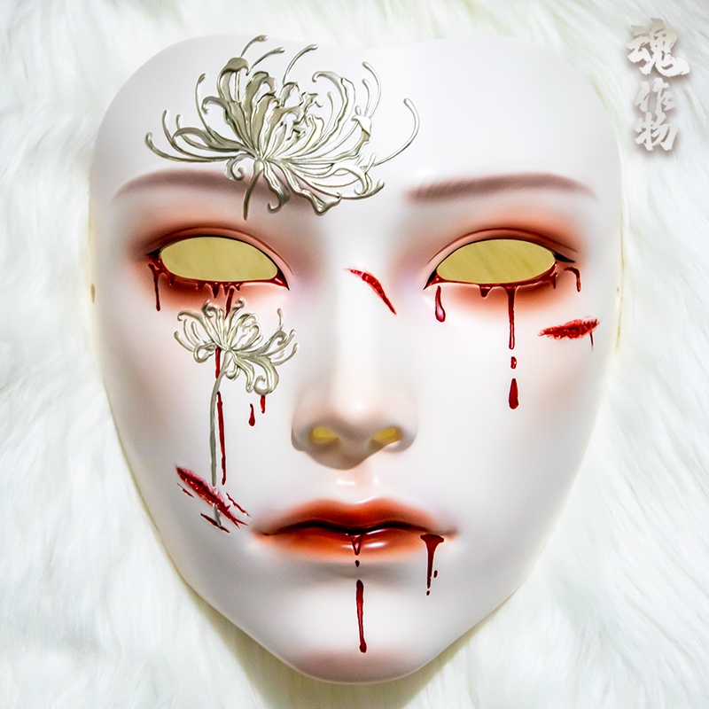 魂作物古风面具全脸男二次元汉服cos国风装饰万圣节道具恐怖面罩