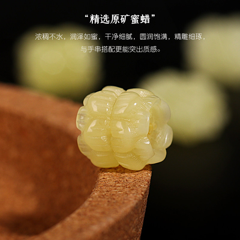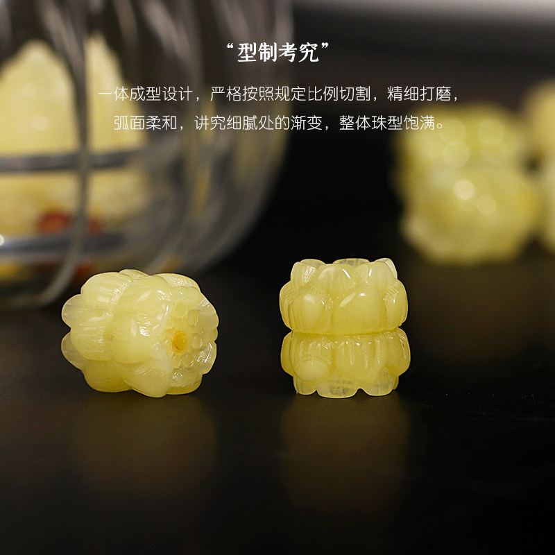 俄料蜜蜡琥珀精工双头莲花背云散珠隔珠文玩佛珠手串手链diy礼物