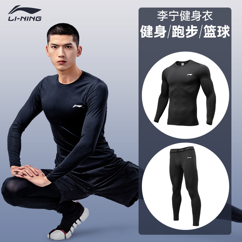 李宁健身衣套装男长袖运动服篮球跑步装备加绒高弹紧身长裤打底裤