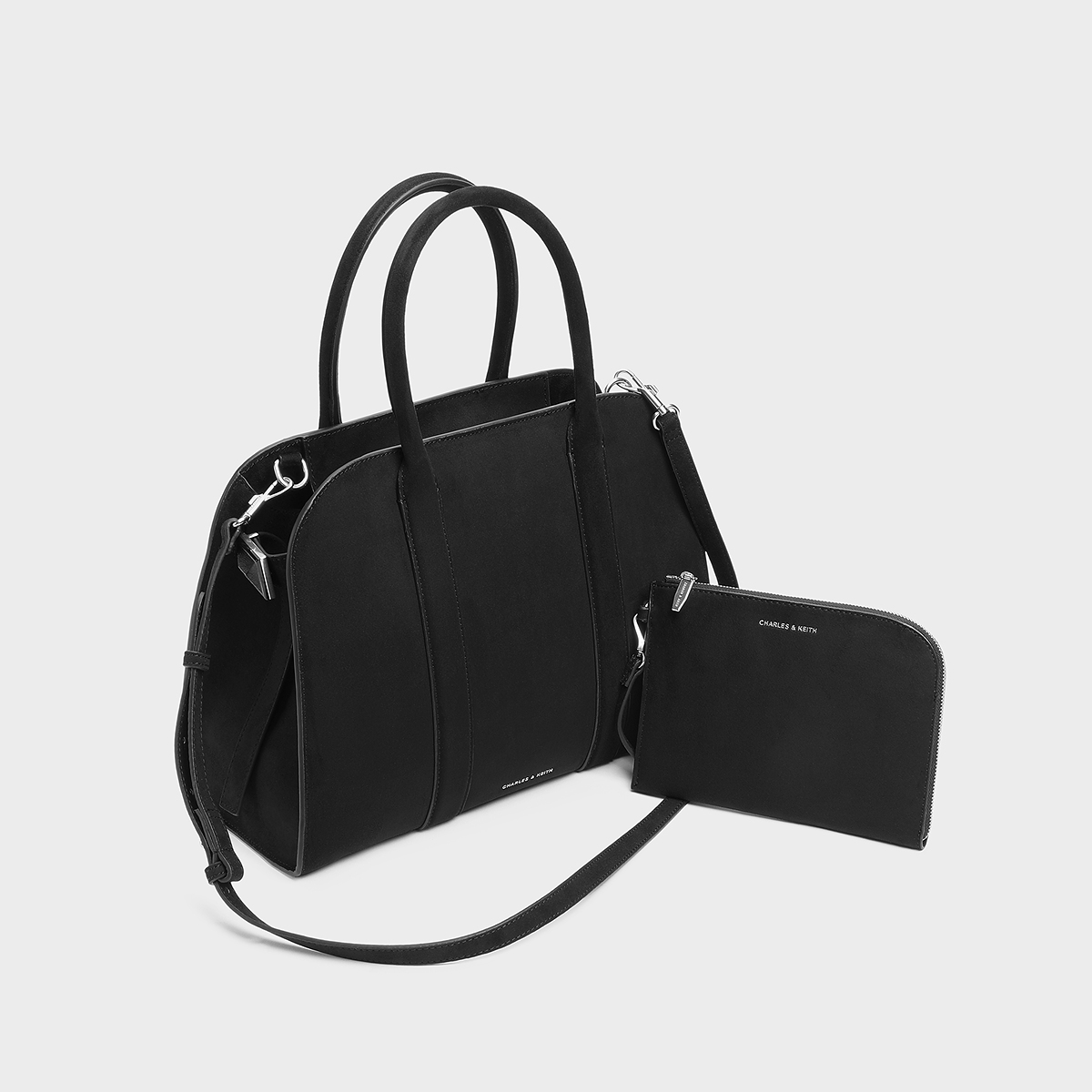 CHARLES&KEITH秋冬女包CK2-30840593-1复古通勤简约仿麂皮托特包