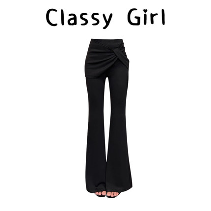 黑色假两件微喇西装裤女早秋高级感气质百搭高腰显瘦直筒休闲裤子