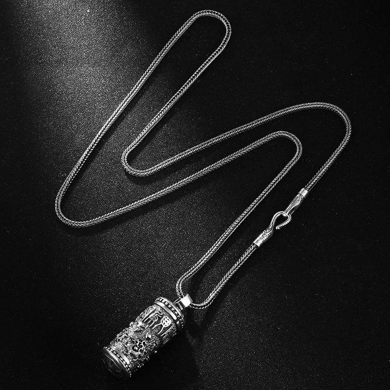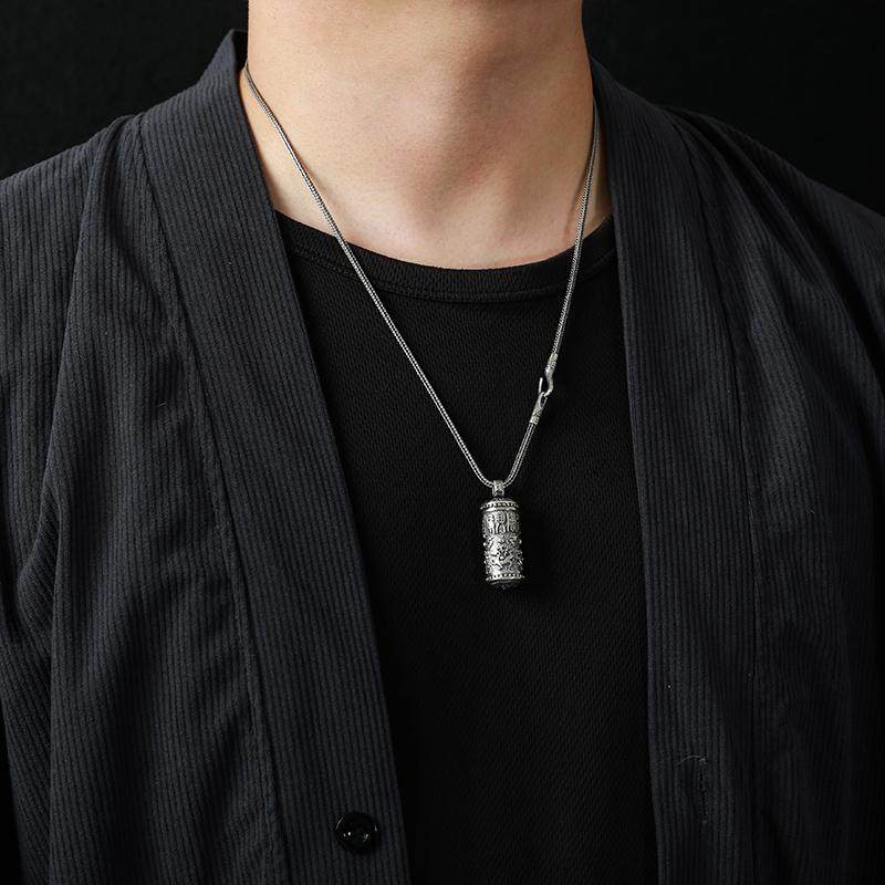 s925银蛇纹扣项链纯银男士复古方形蛇骨链女新款百搭吊坠简约素链