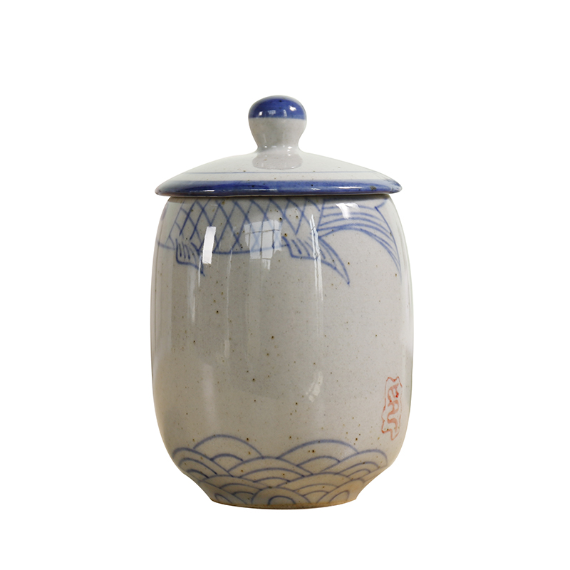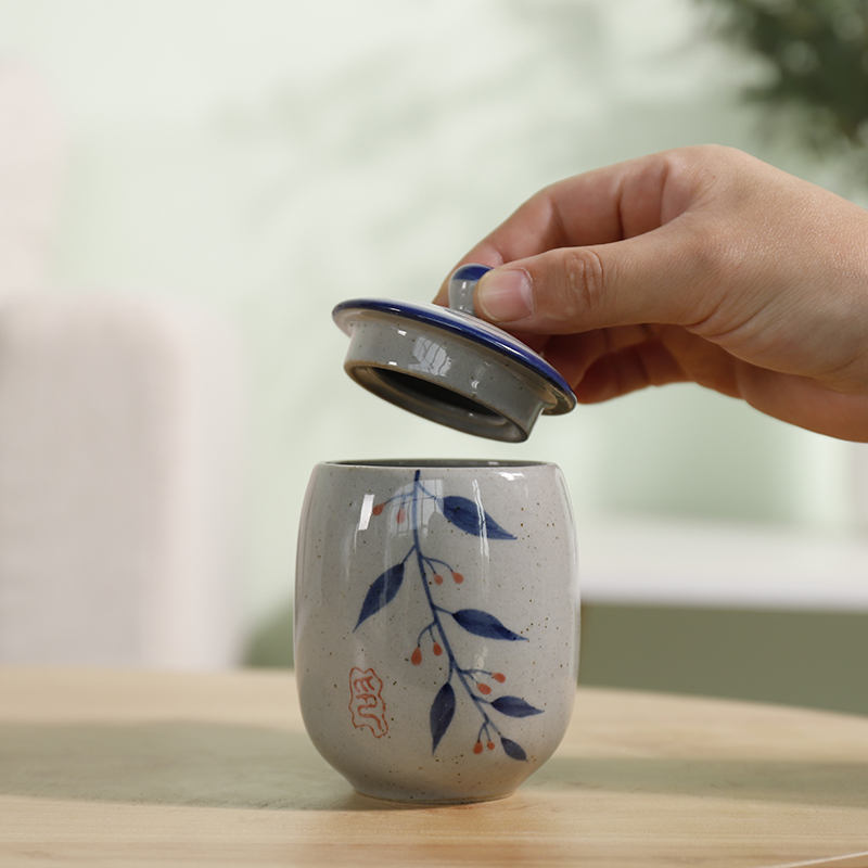 带盖子茶杯粗陶手绘水杯复古
